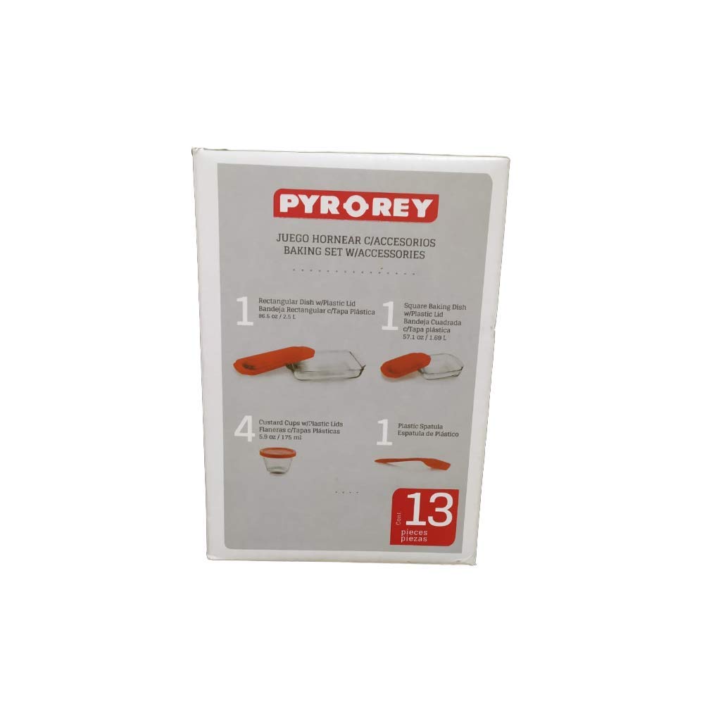 Made In Mexico Hornea Guarda Y Conserva Pyr-O-Ray 13 Piece Glass Food Container Set Baking Utility Custard Cups Spatula Rectangu