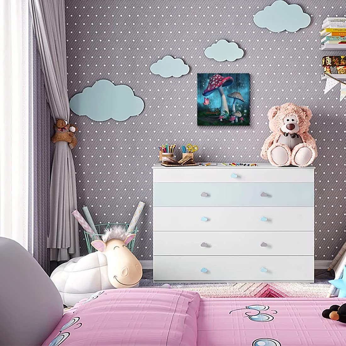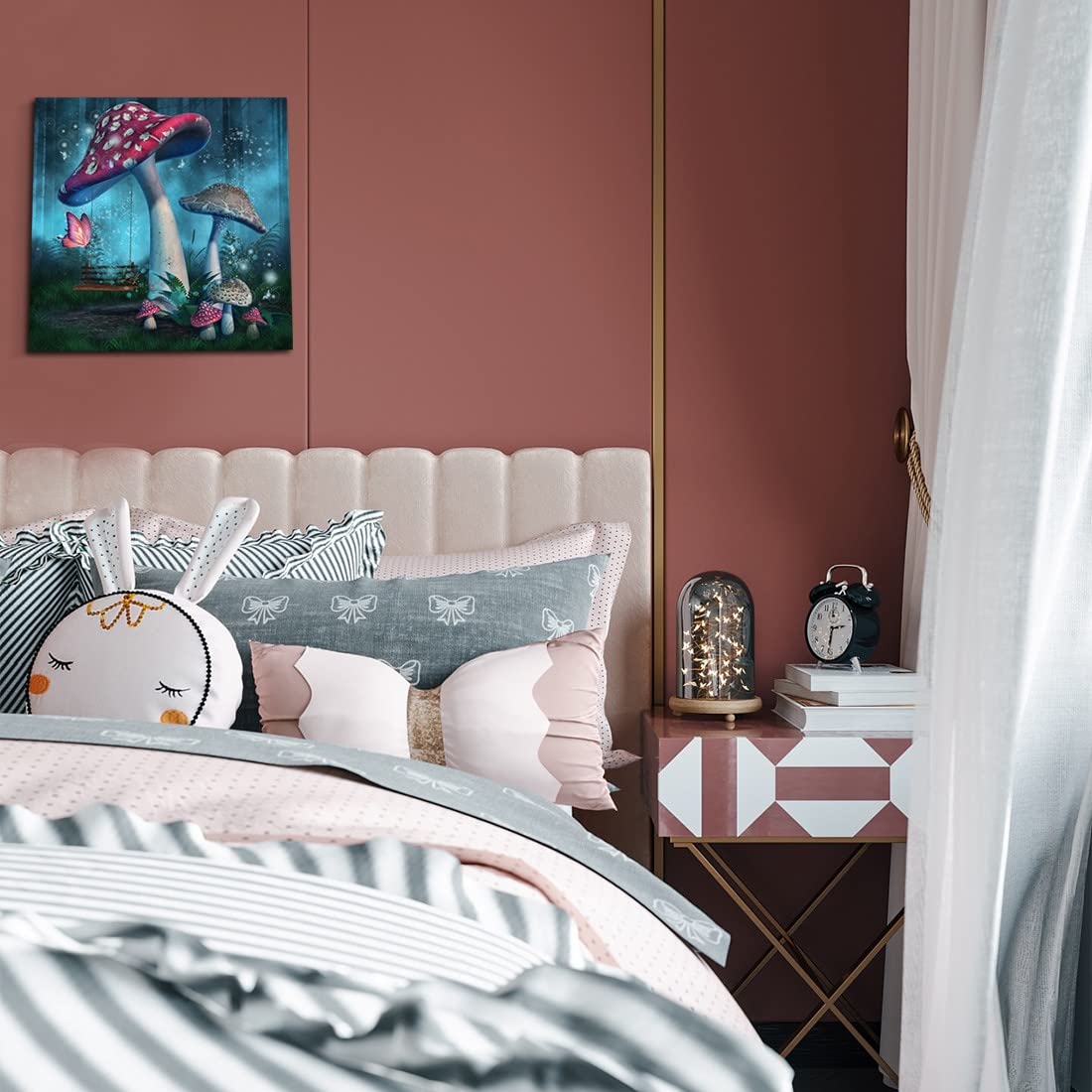 Magical Forest Wall Art Fantasy Mushroom Wall Decor Nature Landscape Plant Picture Butterflies Canvas Print Nursery Decor Fairyt