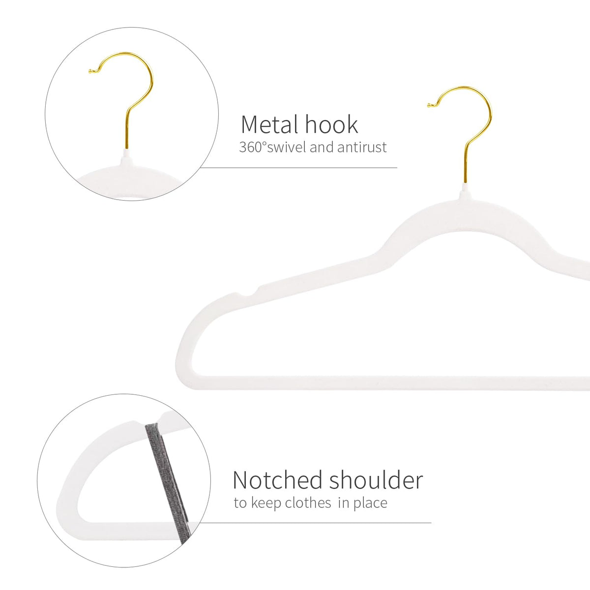 - Q: How do the notched shoulders benefit my clothing? A: The notched shoulders of the hangers have a contoured curve and V-notches at both ends, which help to maintain the shape of your garments and prevent them from slipping off.