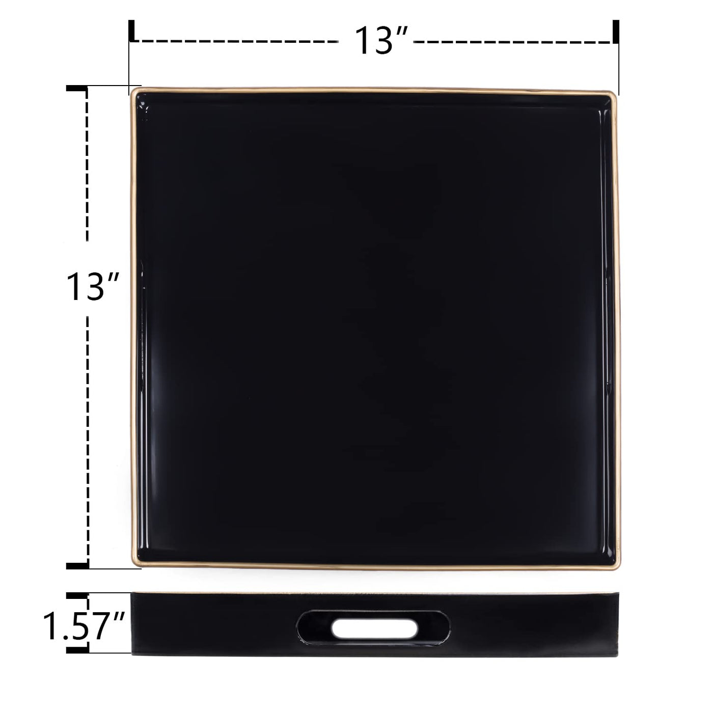 MAONAME Decorative Tray Black Serving Tray with Handles Coffee Table Tray Square Plastic Tray for Ottoman Bathroom Kitchen 13''x13''x1.57''