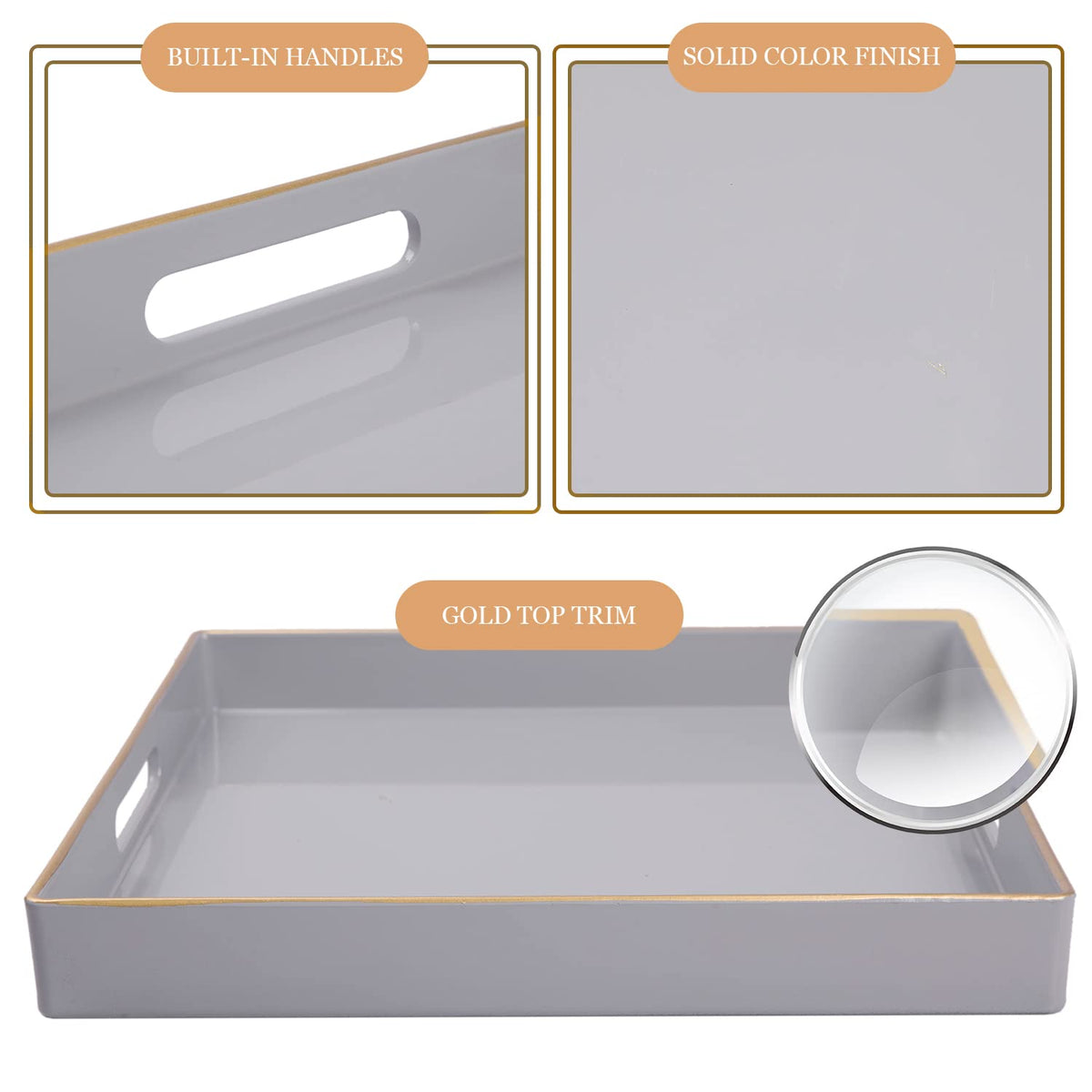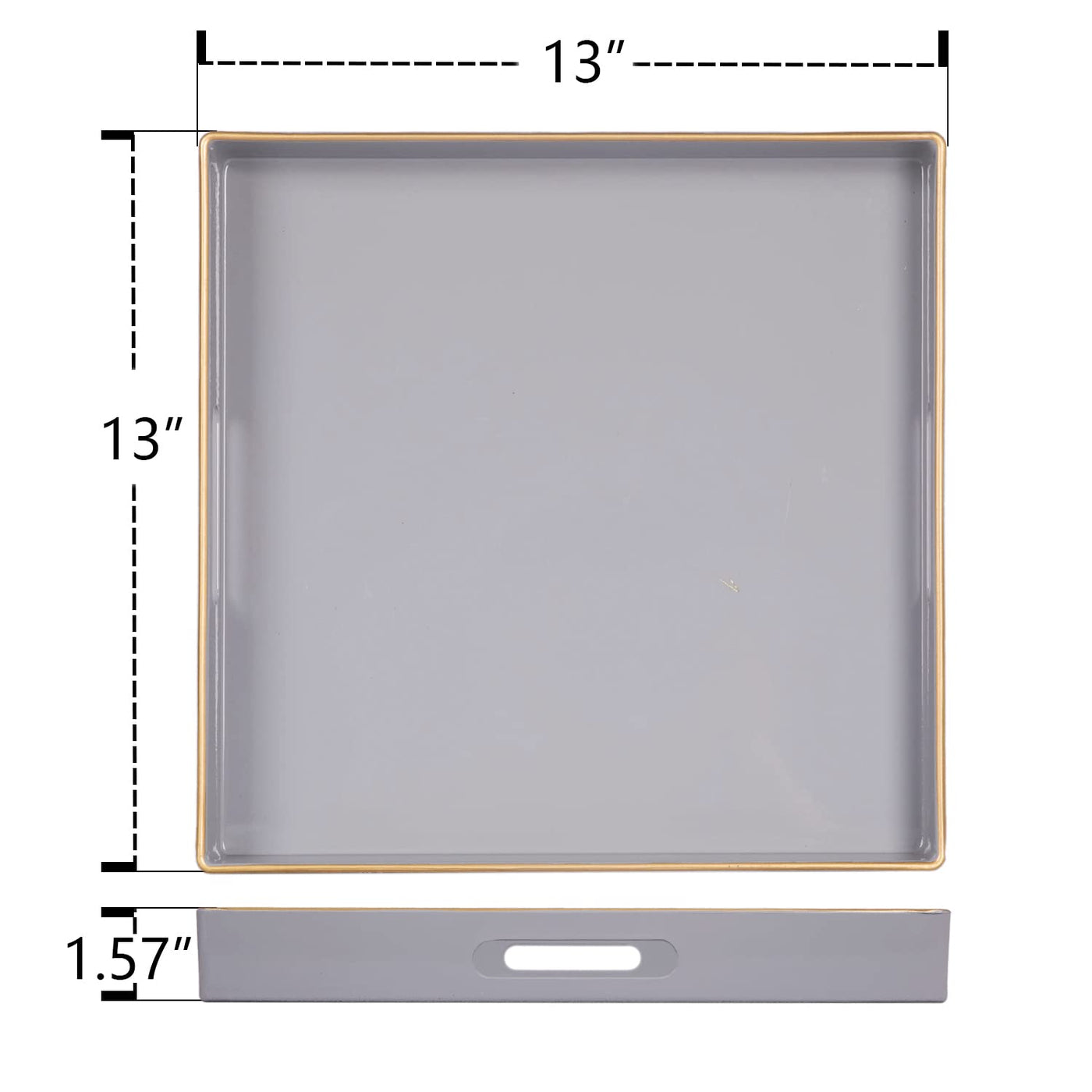 MAONAME Decorative Tray Gray Serving Tray with Handles Coffee Table Tray Square Plastic Tray for Ottoman Bathroom Kitchen 13''x13''x1.57''