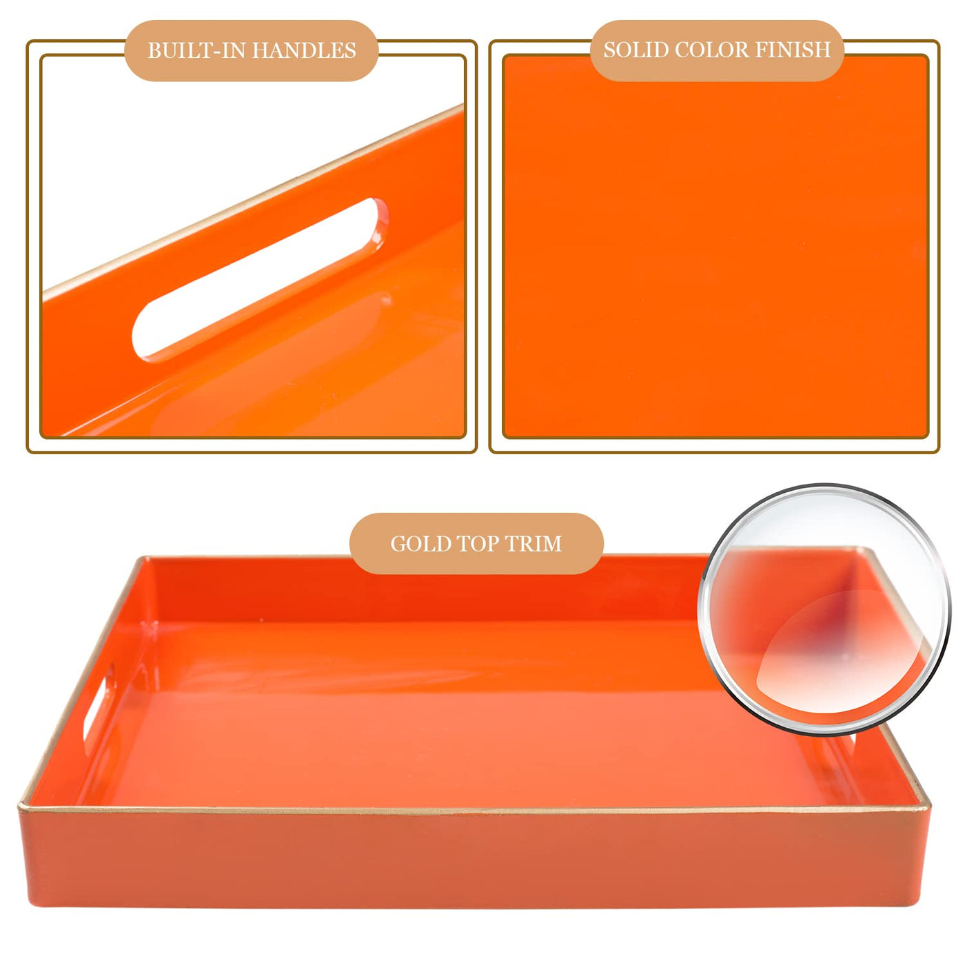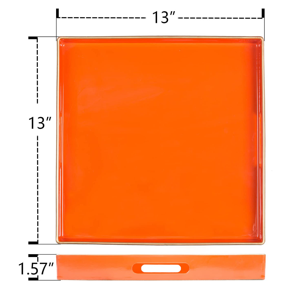 MAONAME Decorative Tray Orange Serving Tray with Handles Coffee Table Tray Square Plastic Tray for Ottoman Bathroom Kitchen 13''x13''x1.57''