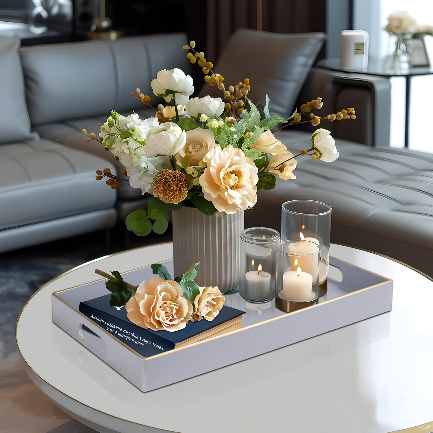 Maoname Gray Serving Tray With Handles, Modern Grey Decorative Tray For Coffee Table, Plastic Rectangular Gray Tray For Ottoman,