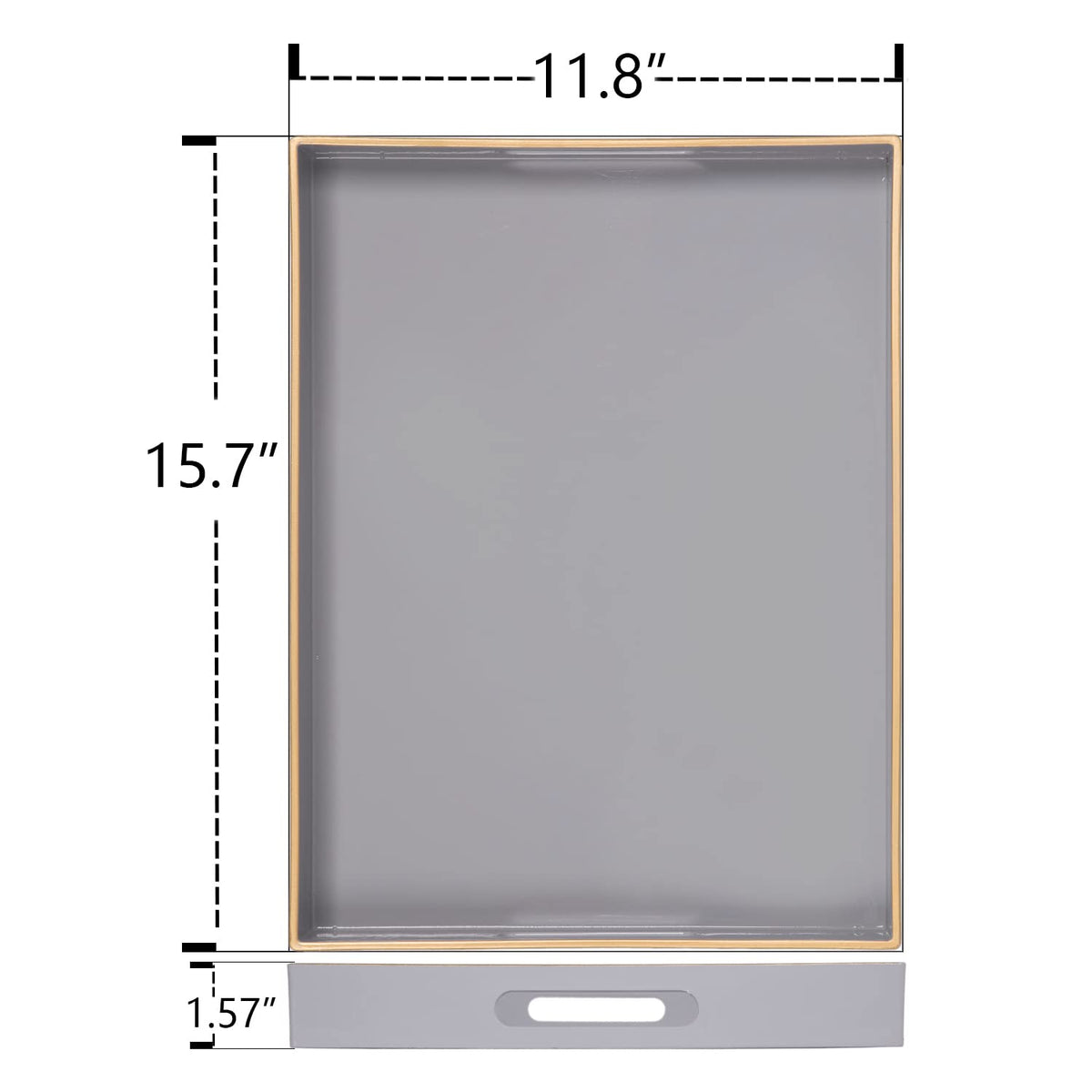 - Q: What are the dimensions of the MAONAME Gray Serving Tray? A: The dimensions of the MAONAME Gray Serving Tray are 15.7 inches in length, 11.8 inches in width, and 1.57 inches in height.
