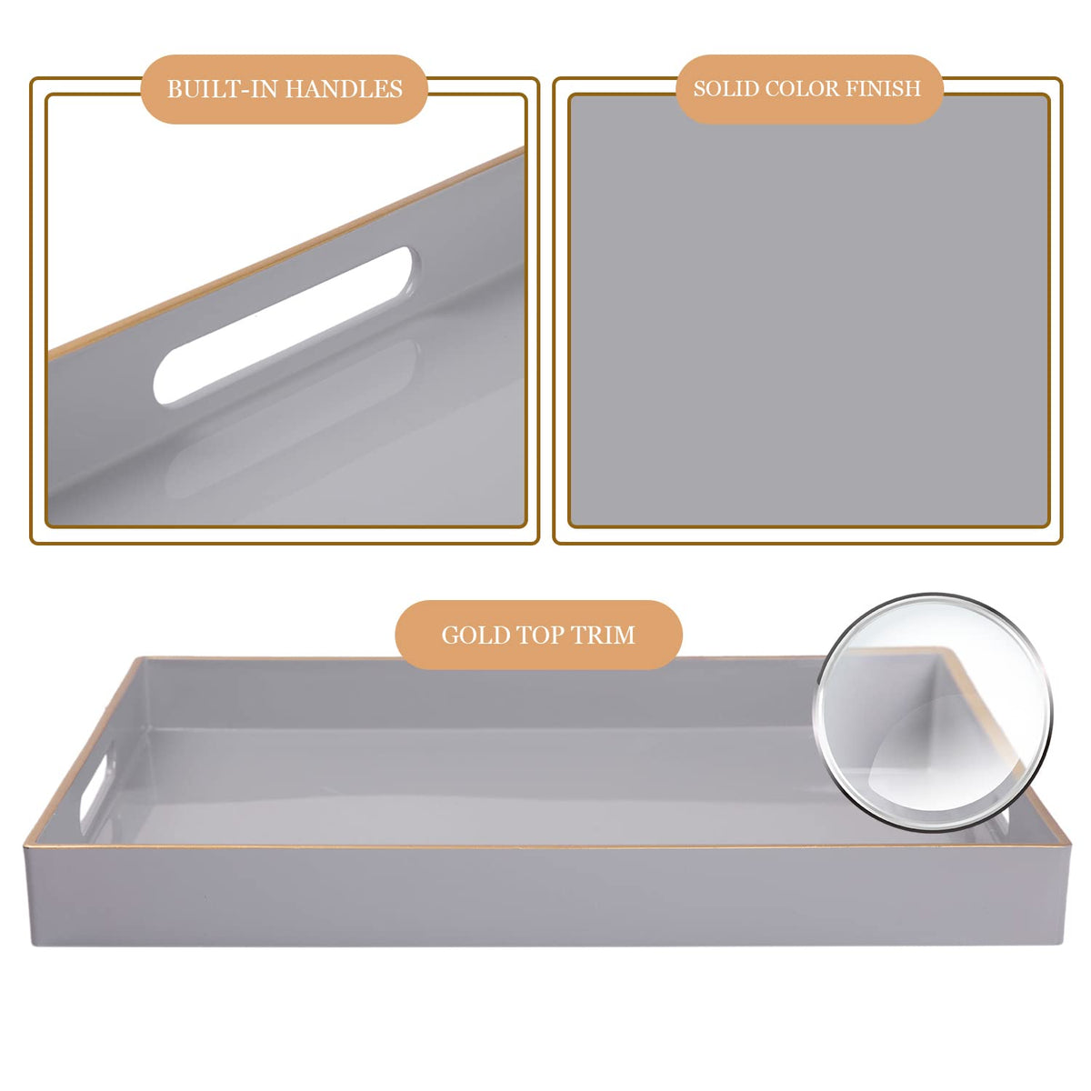 MAONAME Gray Serving Tray with Handles Rectangular Decorative Tray Modern Coffee Table Tray Plastic Ottoman Tray for Bathroom Decor 15.7