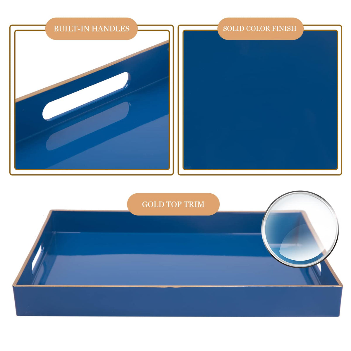 MAONAME Royal Blue Serving Tray with Handles Rectangular Decorative Tray Modern Coffee Table Tray Plastic Ottoman Tray for Bathroom Decor 15.7
