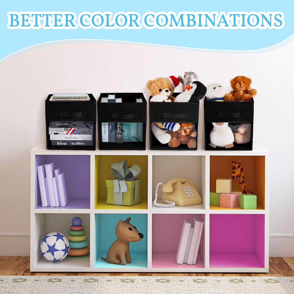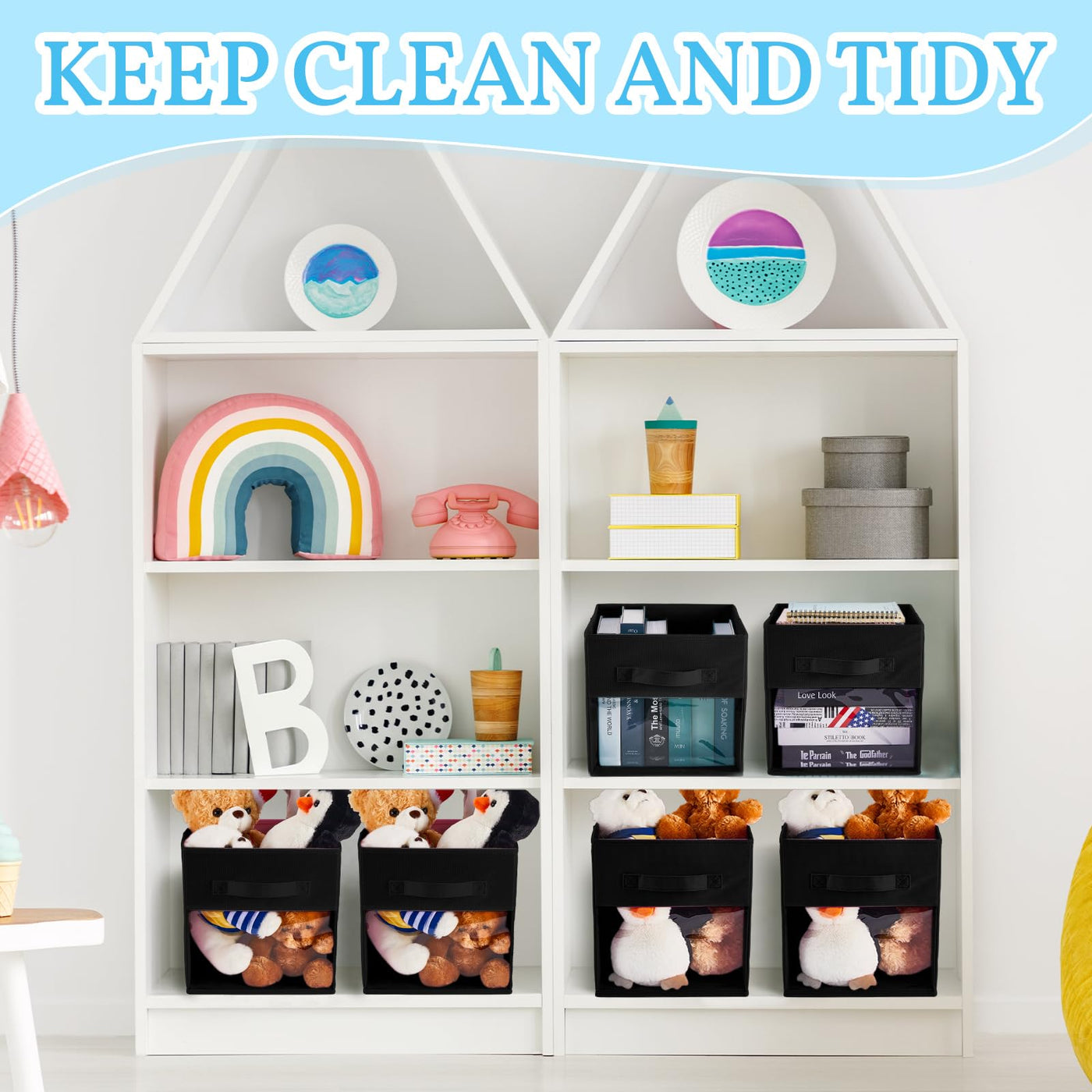 Marsui 12 Pcs Collapsible Cube Storage Bin With Window Daycare Storage Organizer Bins With Handle Fabric Storage Bins For Kid Ro