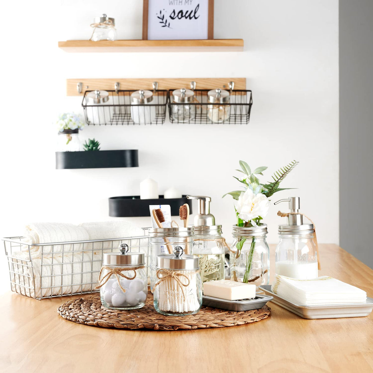 Mason Jar Bathroom Accessories Set 8 Pcs-Lotion Soap Dispenser,Toothbrush Holder,2 Apothecary Jars, Flower Vase,Soap Holder,Vani