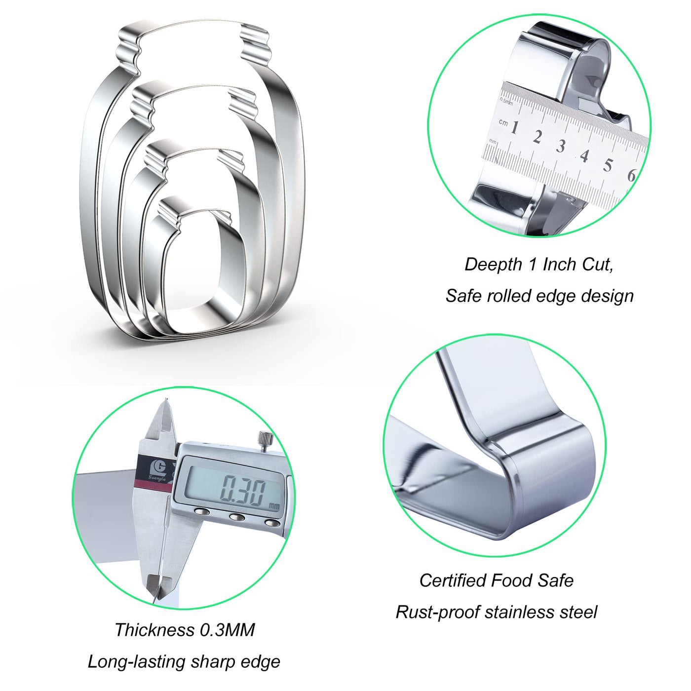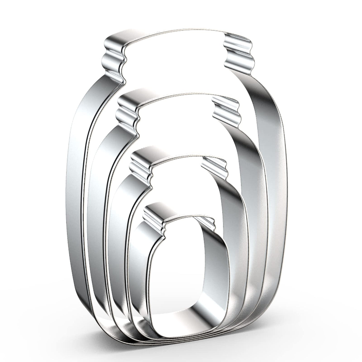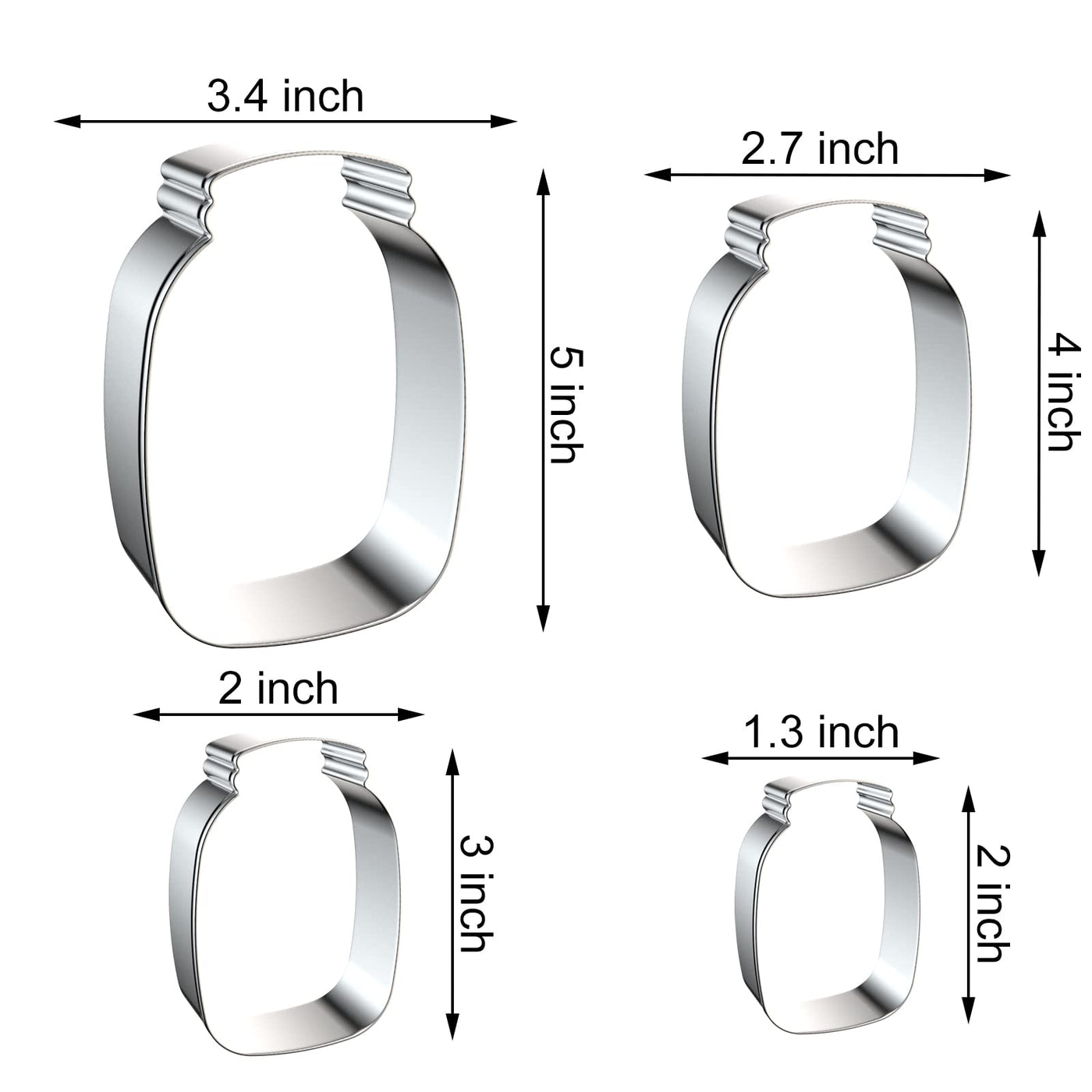Mason Jar Cookie Cutter Set - 5'', 4'', 3'', 2'' - 4 Piece Milk Bottle Cookie Cutters Shapes Biscuit Molds - Stainless Steel
