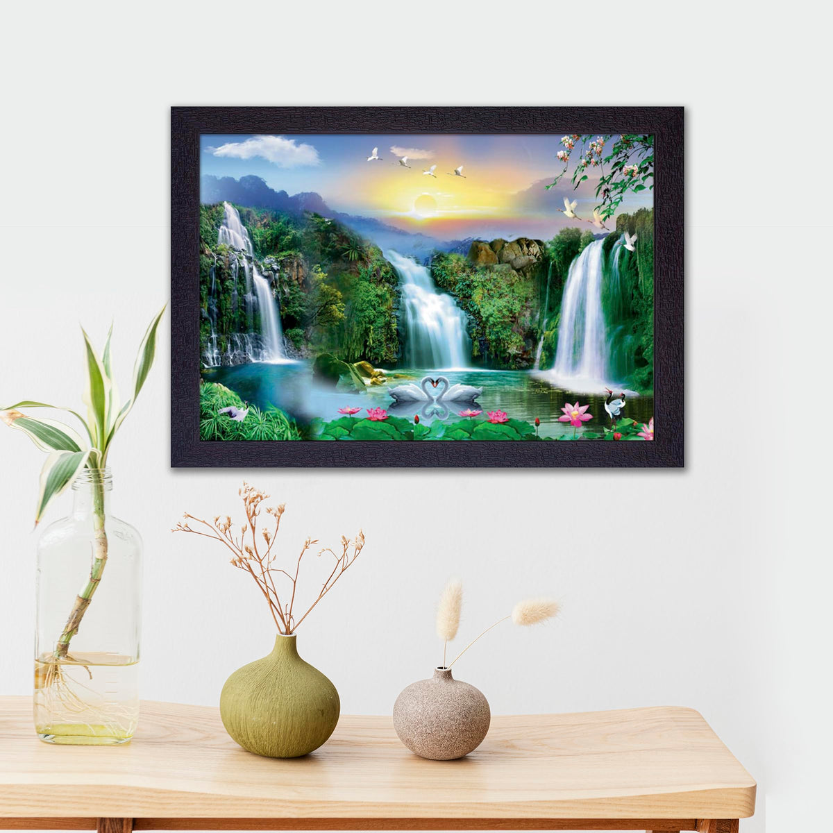 Masstone Decorative Vastu Waterfall Lucky Wall Painting With Uv Textured Effect Framed Hd, 50X35 Cm Wall Hanging Photos Home Dco