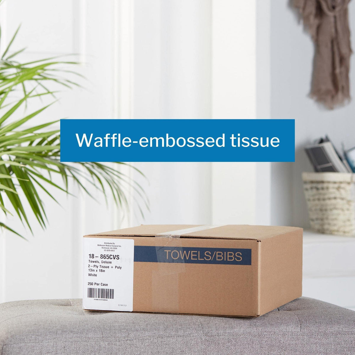 Mckesson Procedure Towels, Disposable - Waffle Embossed, Non-Radiopaque, Non-Sterile, Deluxe 2-Ply Tissue With Polyback - White,