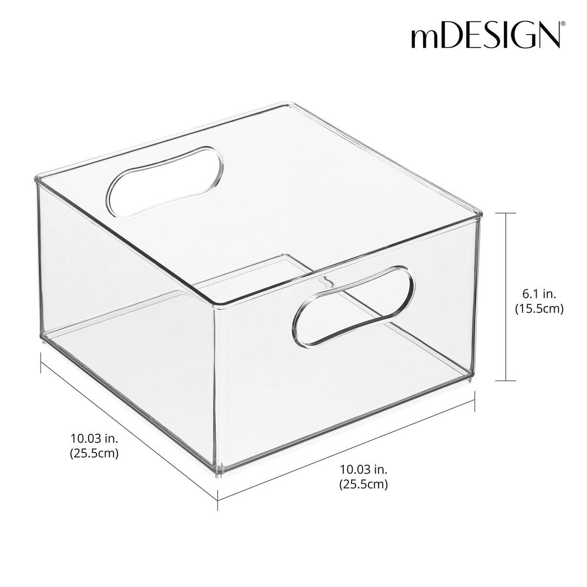 • Q: What is the size of the mDesign Deep Plastic Stackable Storage Organizer Container Bin? A: The mDesign Deep Plastic Stackable Storage Organizer Container Bin measures 10.03 inches by 10.03 inches by 6.1 inches high.