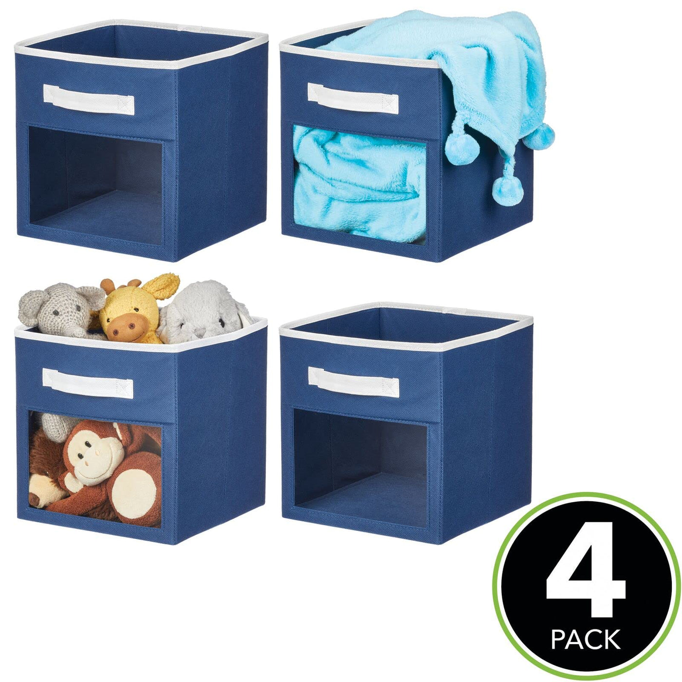 mDesign Fabric Nursery/Playroom Closet Storage Organizer Bin Box with Front Handle/Window for Cube Furniture Shelving Units Hold Toys Clothes Diapers Bibs Jane Collection 4 Pack Navy Blue/White