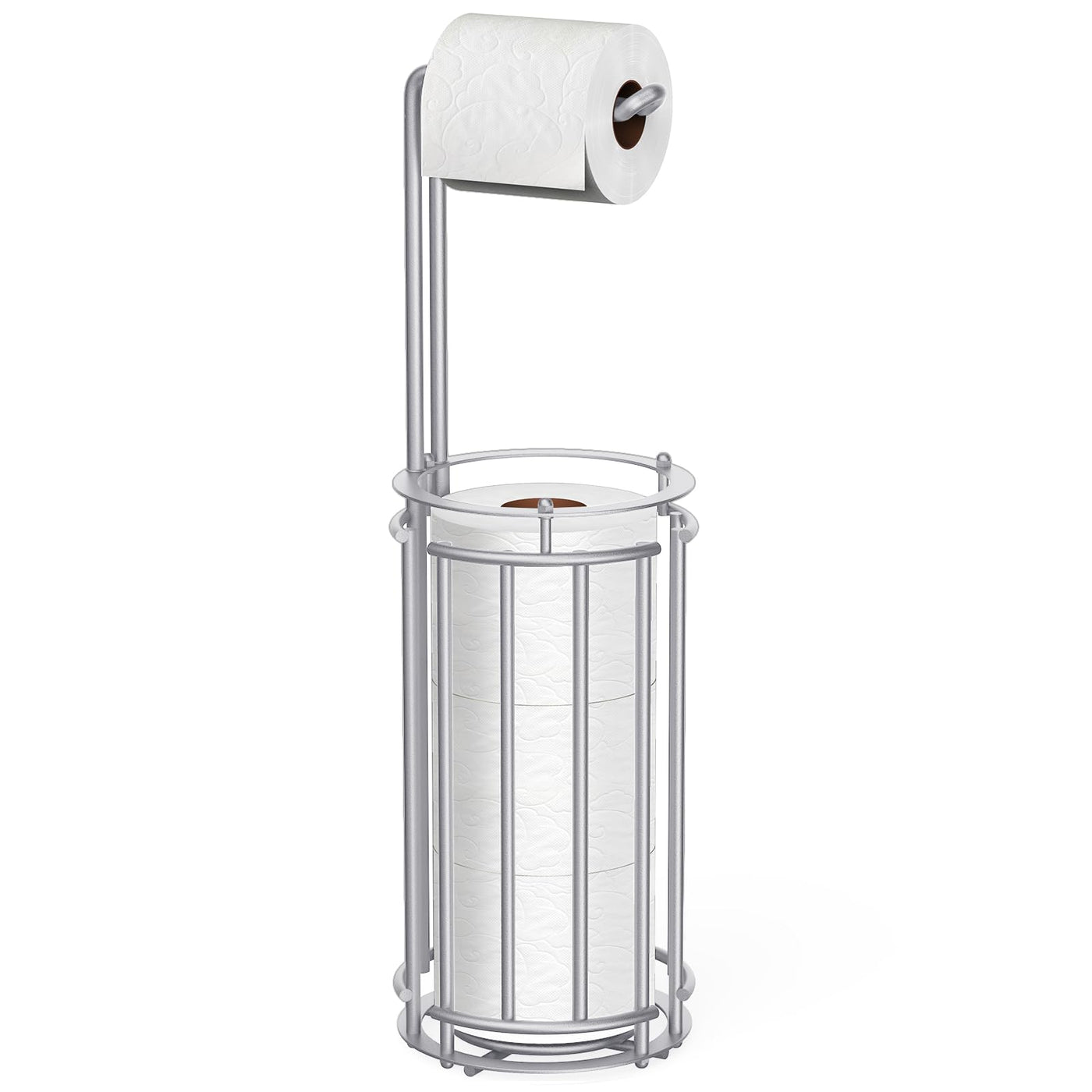 Meangood Toilet Paper Holder Stand And Tissue Paper Roll Dispenser For 4 Mega Rolls (Matte Silver)