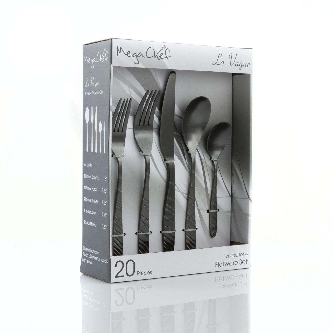- Q: Is the flatware set dishwasher safe? A: Yes, the MegaChef La Vague Flatware Set is dishwasher safe, making it easy to clean and maintain.