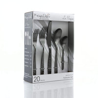 Megachef La Vague 20 Piece Flatware Utensil Set, Stainless Steel Silverware Metal Service For 4 In Matte Black