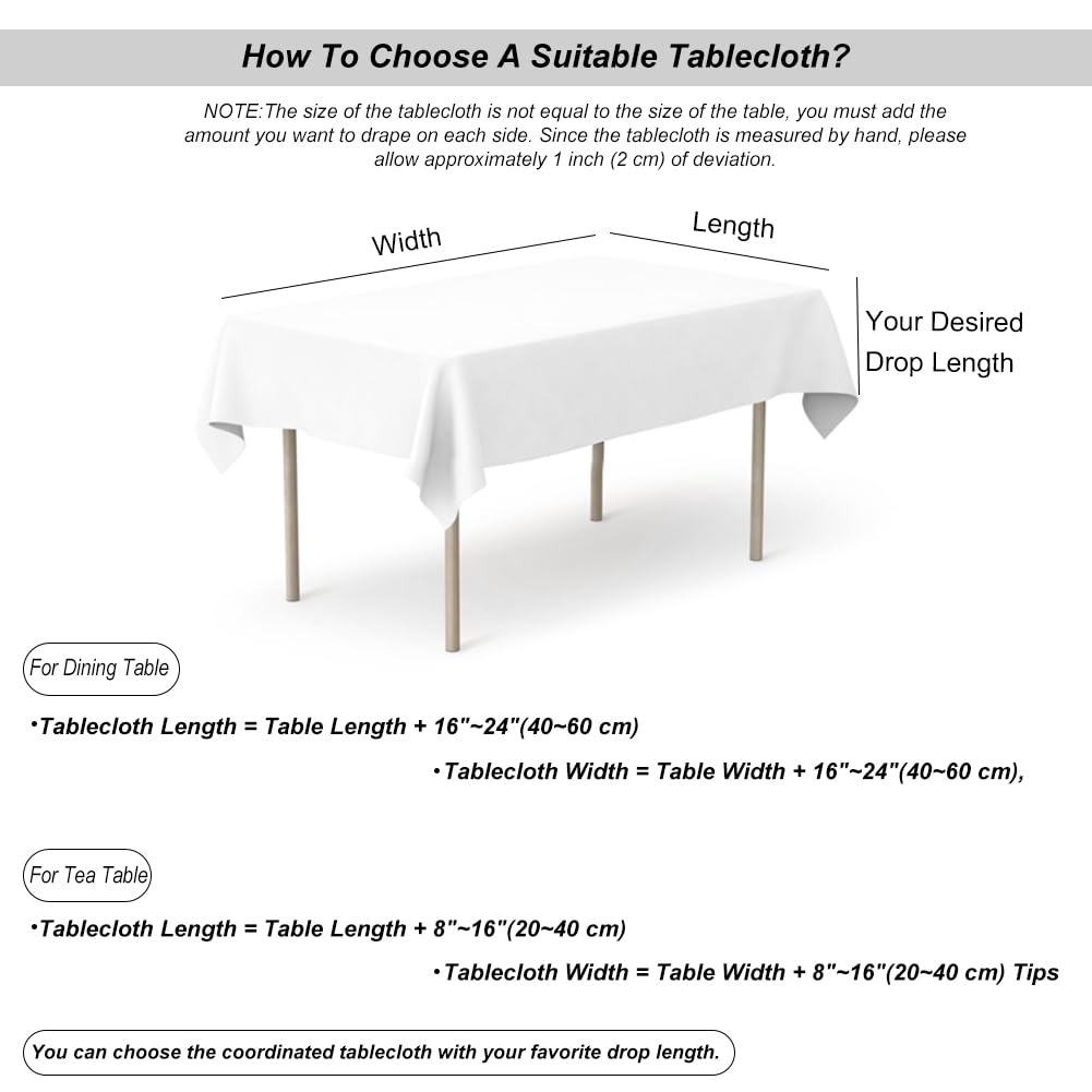 • Q: What is the size of the tablecloth? A: The tablecloth measures 55 x 63 inches, making it suitable for various table sizes. It's recommended to measure your table and consider adding extra length for a better drape.