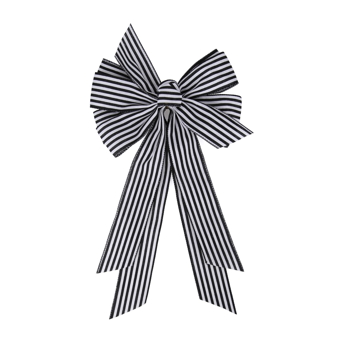 Meseey Large Christmas Black and White Striped Ribbon Bow 20 x 11 Inch Farmhouse Stripes Wreath Bows for Christmas Door Wreath H