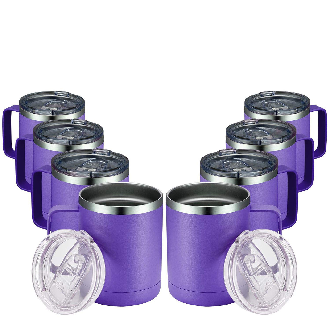 Meway 12Oz Coffee Mug With Handle 8 Pack Bulk,Stainless Steel Insulated Travel Tumblers With Sliding Lid,Double Wall Vacuum Camp