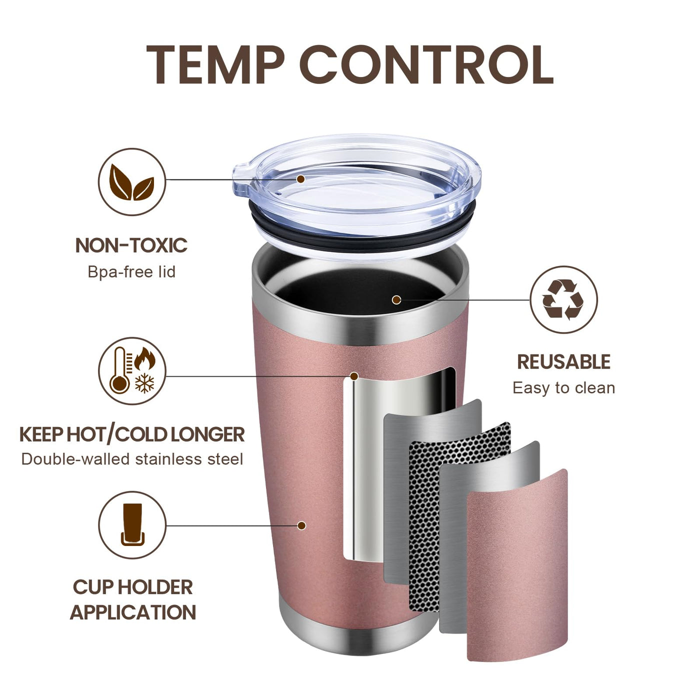 - Q: Does the tumbler have any anti-slip features? A: Yes, the tumbler has a powder-coated exterior that fits comfortably in your hand and provides an anti-slip surface.