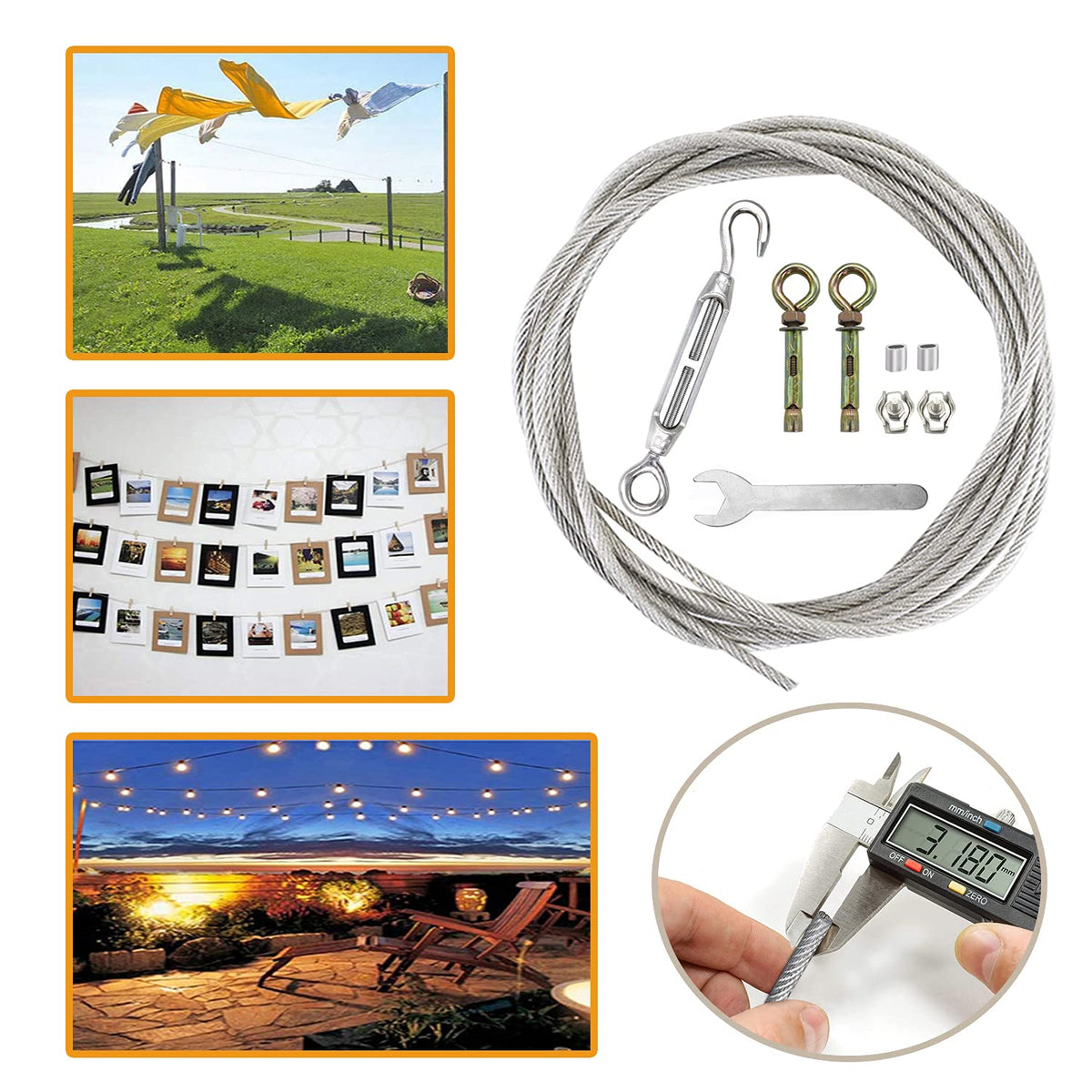 - Q: What are the key features of this clothesline? A: Key features include 304 stainless steel construction, multifunctional use for various hanging projects, a polyethylene coating for added durability, and easy adjustment and removal with a tension screw.