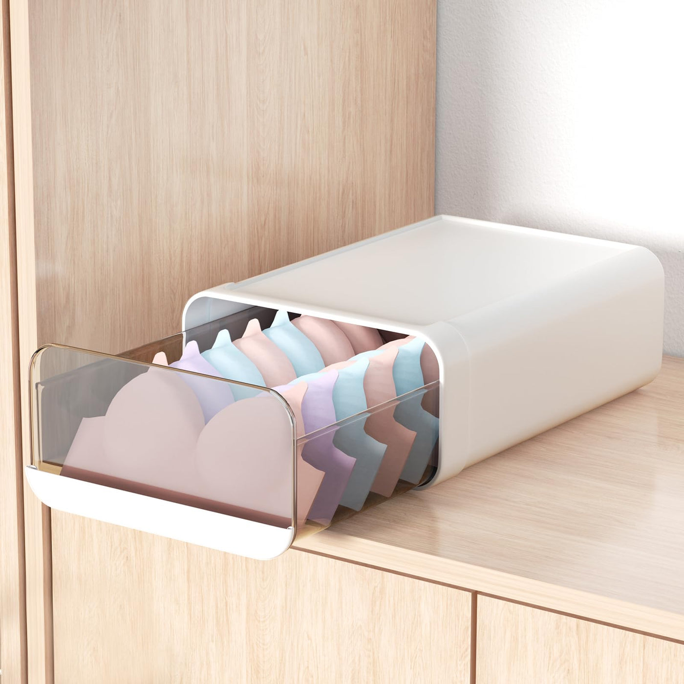 Miaocona Underwear Organizer Drawer, 1 Cell Plastic Sock Underwear Storage Drawer, Stackable Closet Organizers and Storage Box f