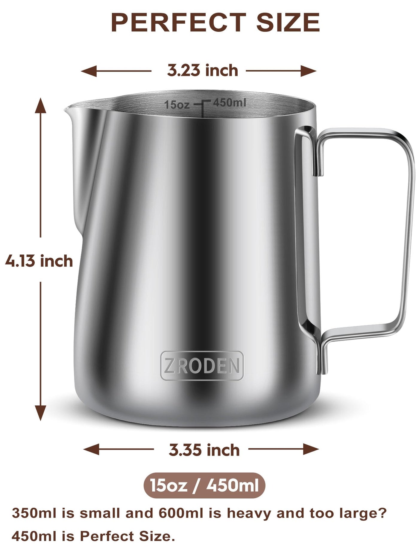 Milk Frothing Pitcher, 15Oz 450Ml Espresso Steaming Pitchers Stainless Steel Cappuccino Coffee Machine Accessories Barista Tools