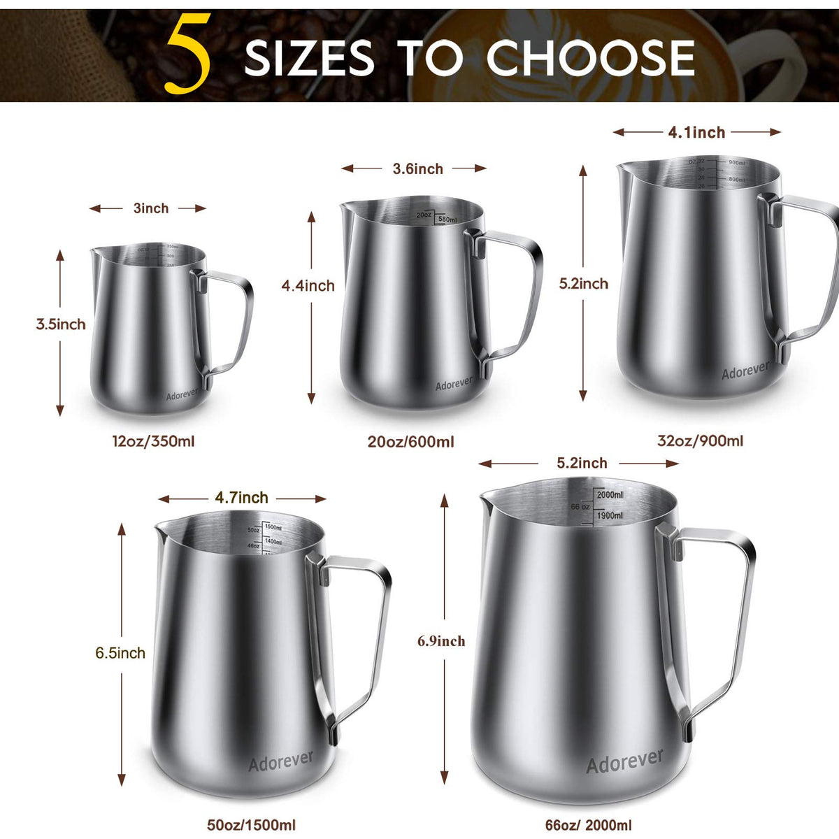 Milk Frothing Pitcher 350Ml/600Ml/900Ml/1500Ml (12Oz/20Oz/32Oz/50Oz) Steaming Pitchers Stainless Steel Milk/Coffee/Cappuccino/La