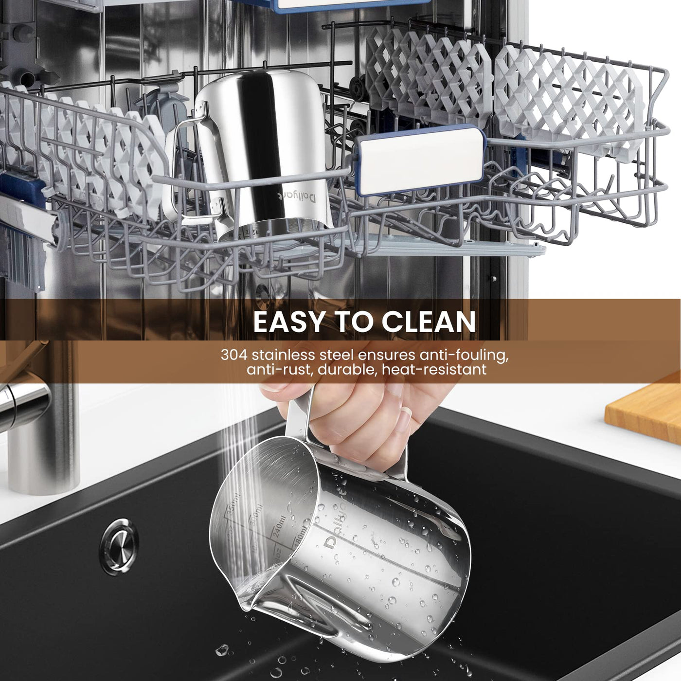 • Q: Is the Dailyart Milk Frothing Pitcher dishwasher safe? A: Yes, the pitcher is easy to clean and is dishwasher safe, making maintenance simple after use.