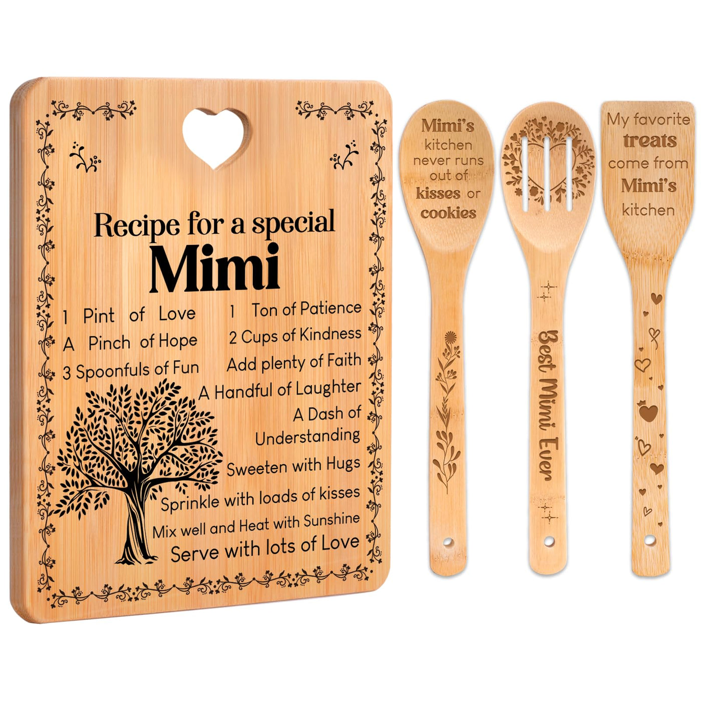 Mimi Gifts - Recipe for a Special Mimi Gifts for Mimi Cutting Board Set, Bamboo-Made Engraved Utensil Set Best Mimi Ever Gifts