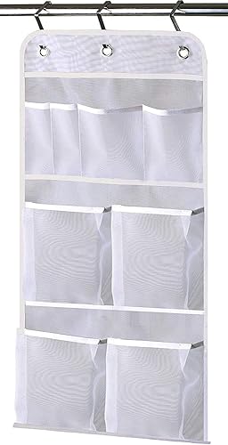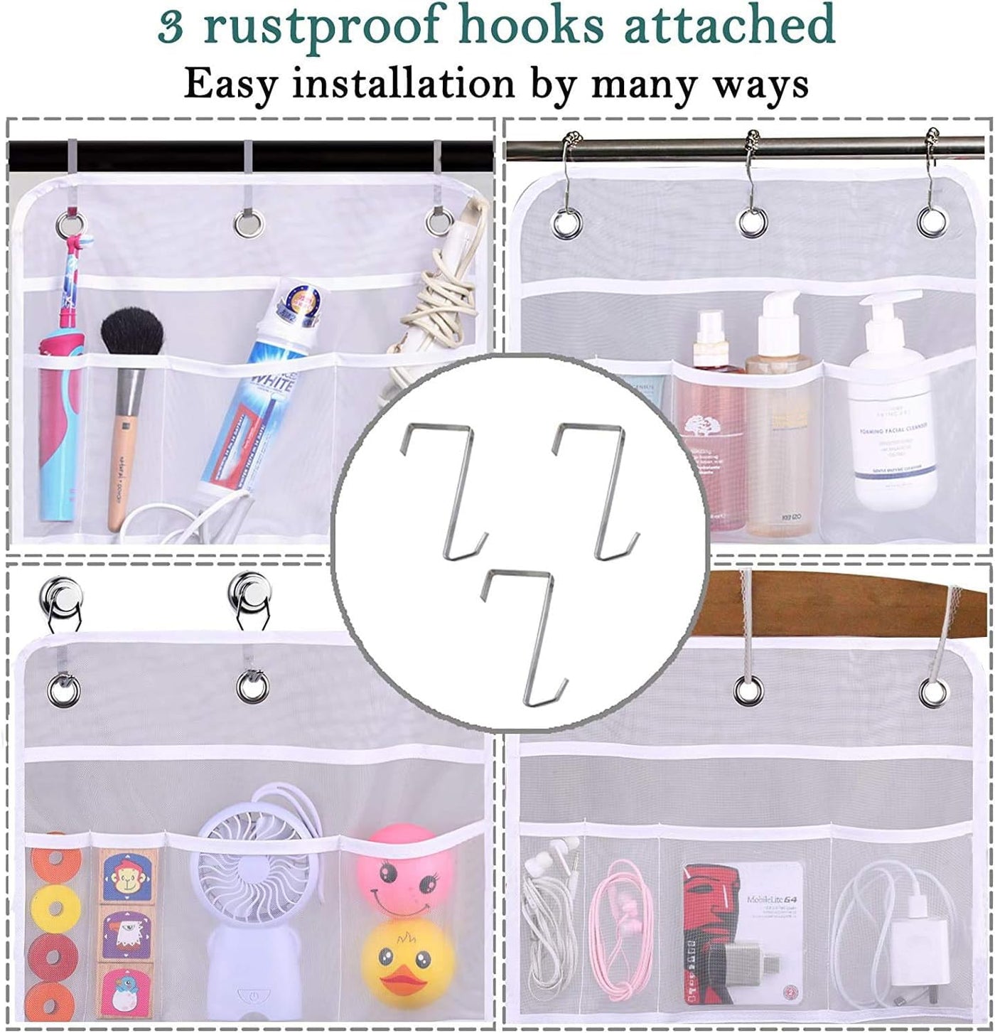 MISSLO Hanging Mesh Pockets Hold 340oz/1000ml Shampoo Shower Organizer with Over the Door Hooks and Shower Curtain Hooks