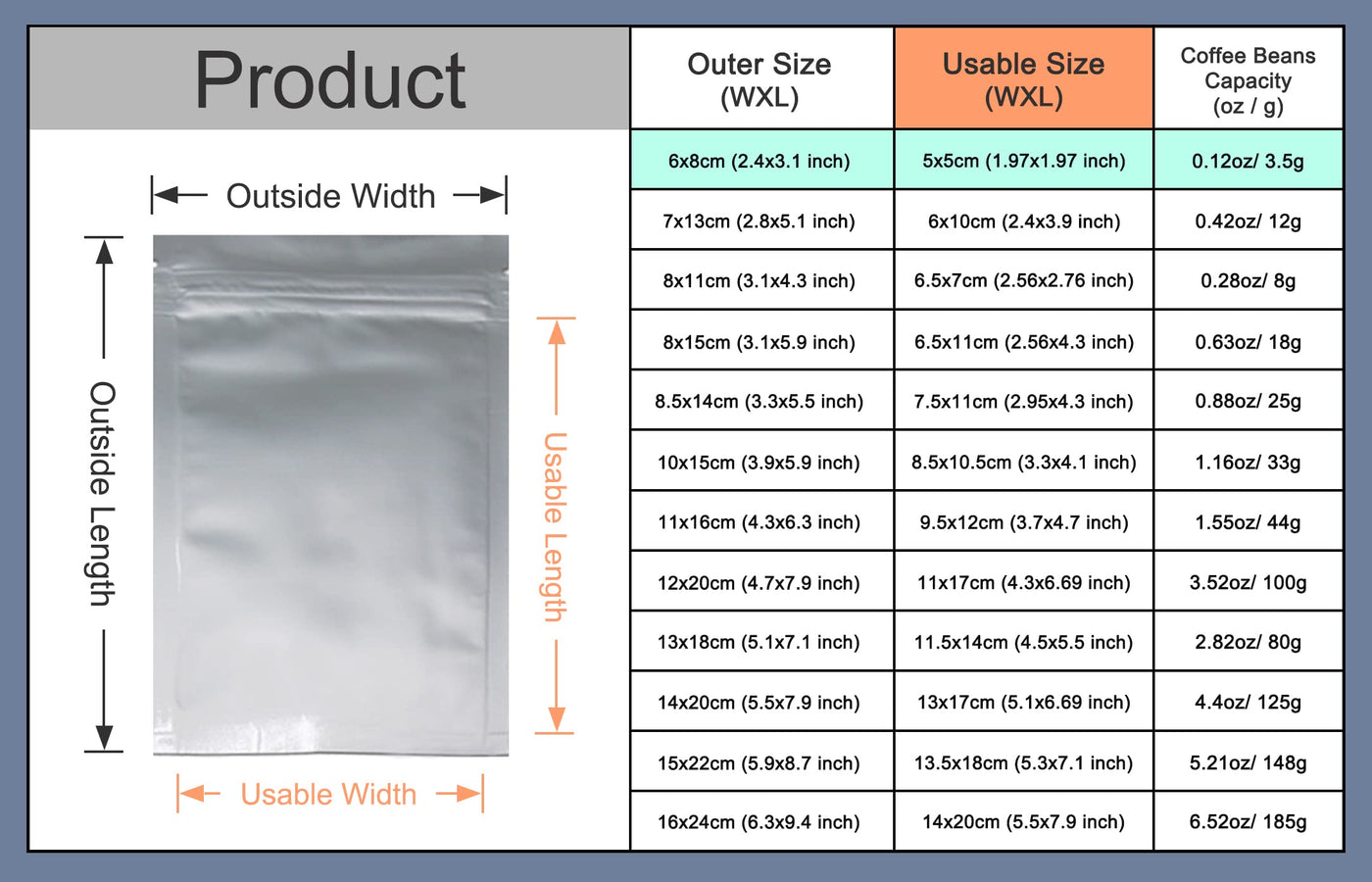 • Q: Can these bags be used for food storage? A: Yes, these bags are suitable for packing food items such as nuts, ground coffee, coffee beans, snacks, cookies, sugar, candy, and more.