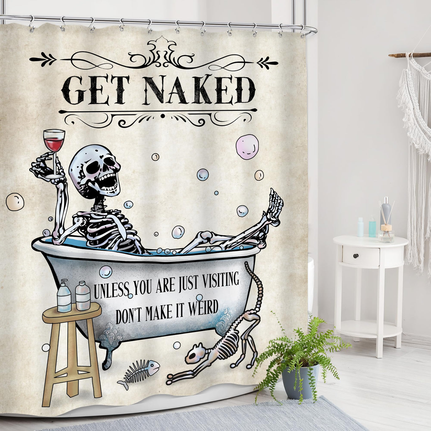 Mitpok Funny Skull Skeleton Shower Curtain Extra Long Cool Unique Gothic Spooky Bone In Bathtub Cat Horror Halloween Bathroom De