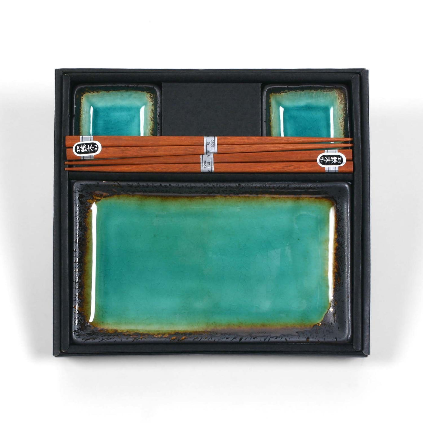 • Q: Is the color of the sushi set consistent with what is shown in the images? A: The set features a beautiful green glaze reminiscent of a peaceful country lake, but if you ordered the item years ago, there may be slight variations in appearance while maintaining quality.
