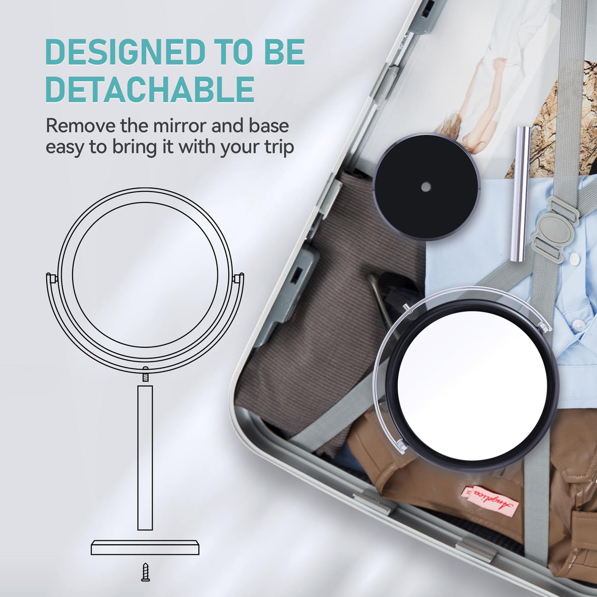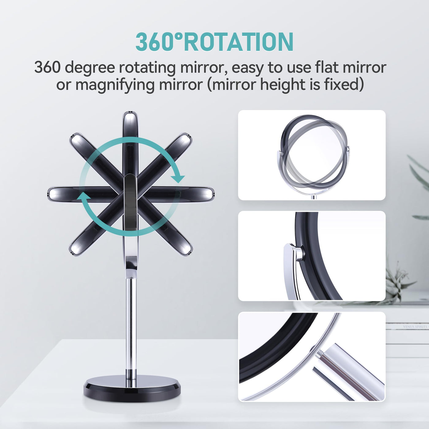 - Q: Can this mirror be rotated? A: Yes, the mirror has a 360° swivel joint that allows easy toggling between the 1x and 20x magnification.