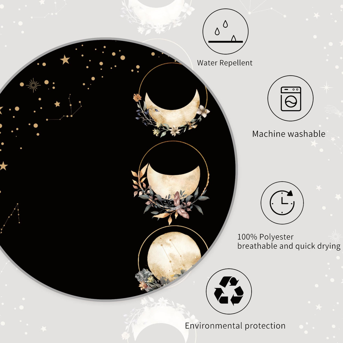 - Q: Does the shower curtain have a specific design theme? A: Yes, the shower curtain features a moon phase and celestial design with a gothic and witchy theme, incorporating elements like tarot and zodiac constellations.