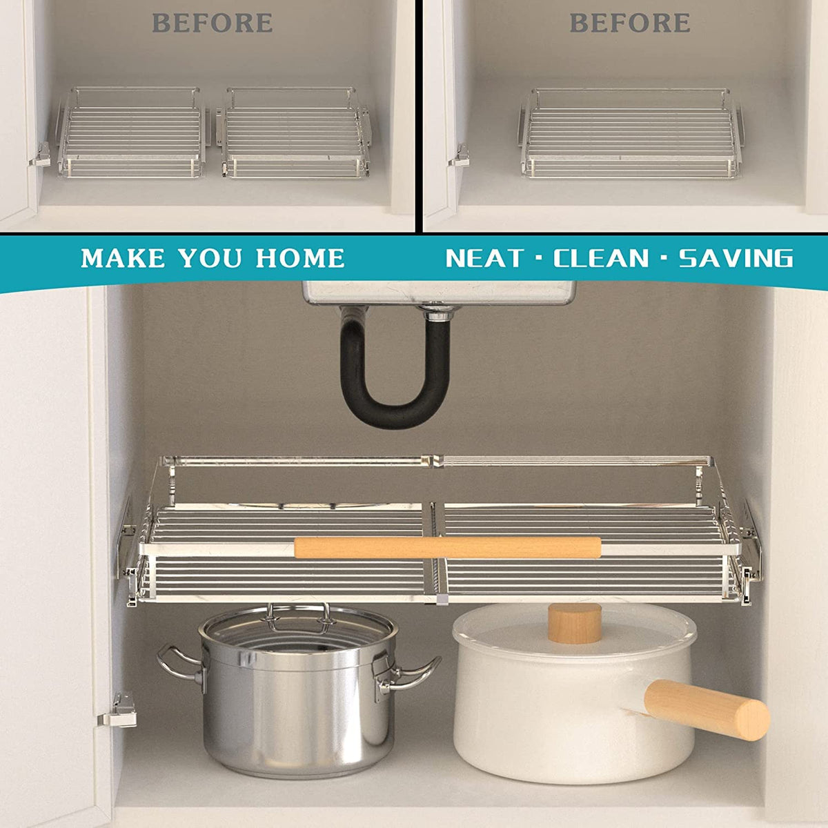 • Q: How many baskets are included in the package? A: The package includes a set of 2 pull-out cabinet shelves.