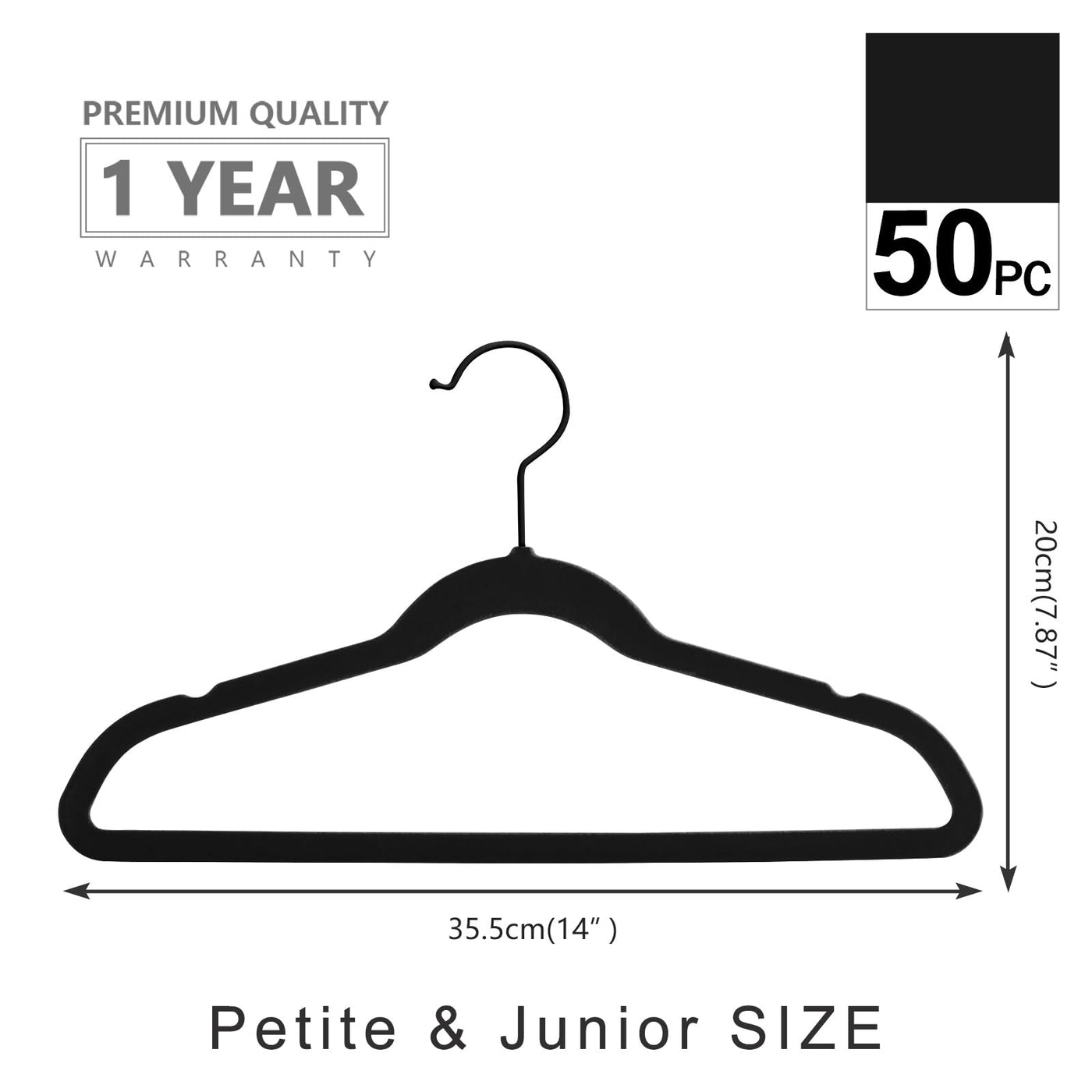 - Q: How many hangers are included in a pack? A: Each pack contains 50 velvet kids hangers.