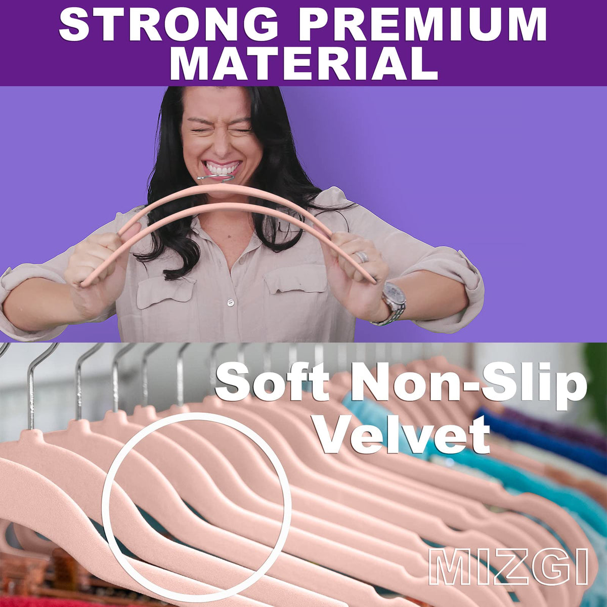 - Q: Are these hangers non-slip? A: Yes, the MIZGI hangers feature a soft velvet surface that prevents clothes from slipping off and eliminates creases on pants.