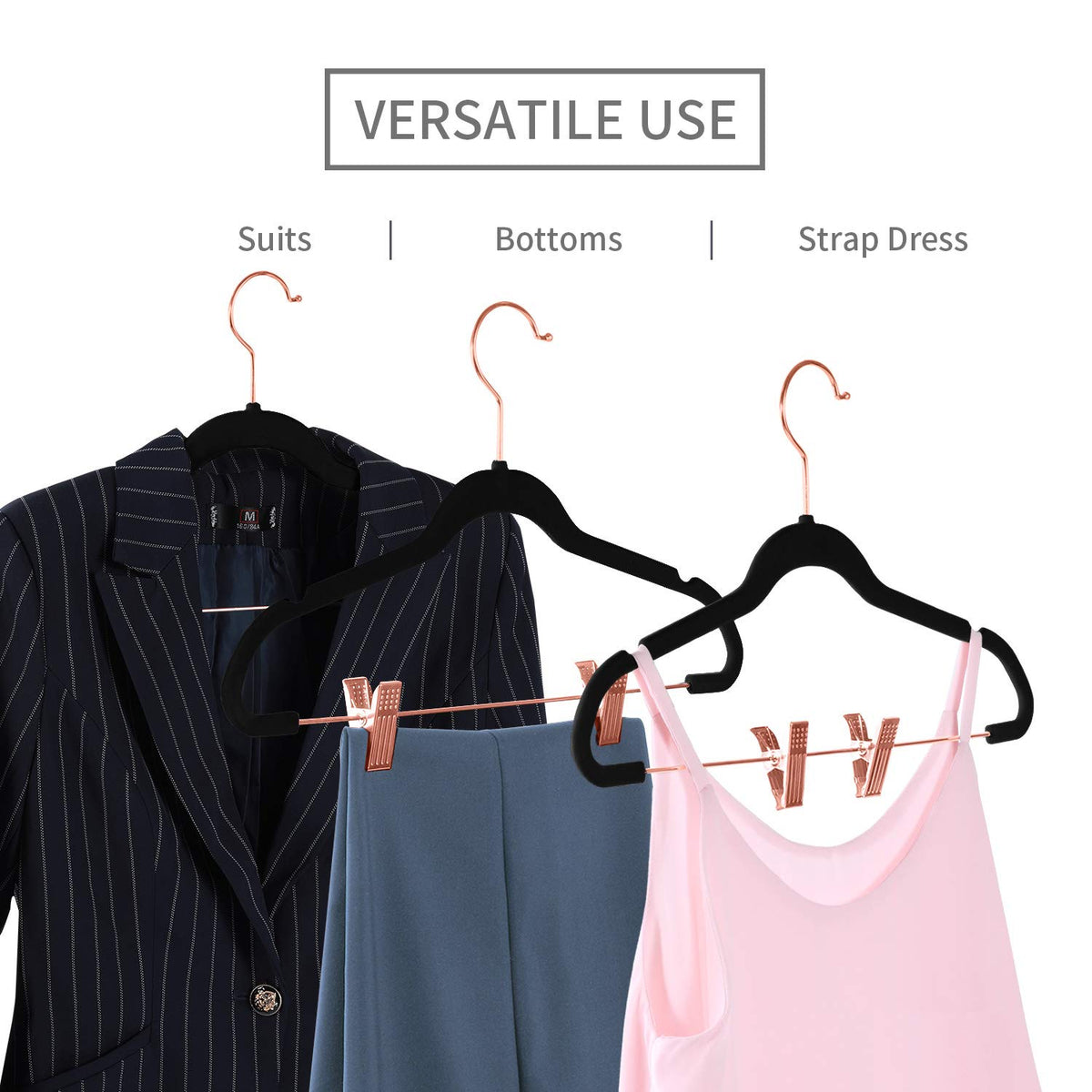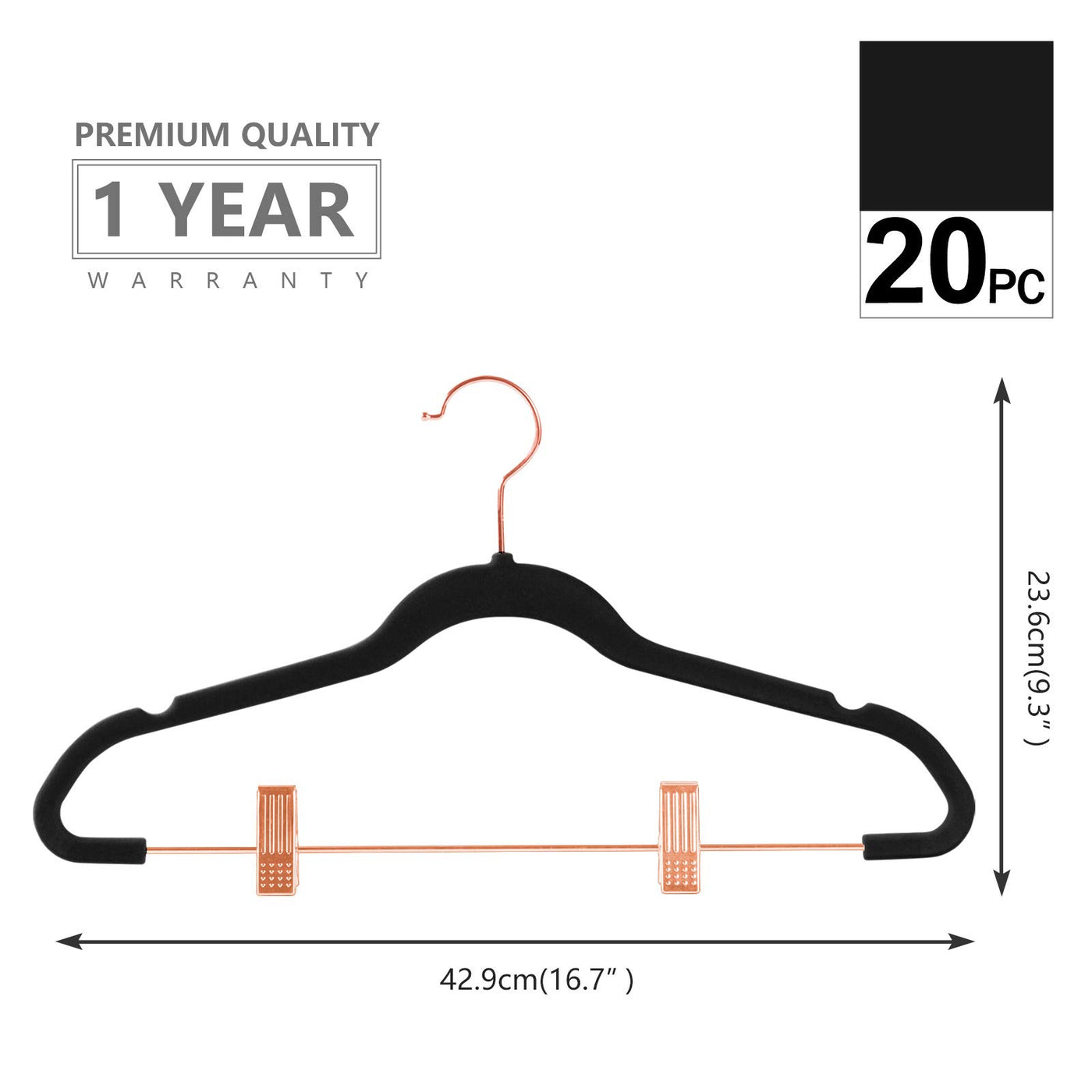 Mizgi Premium Velvet Pants Hangers With Clips (Pack Of 20) Slim Skirt Hangers- Non Slip Felt Outfit Dress Hangers Black - Copper