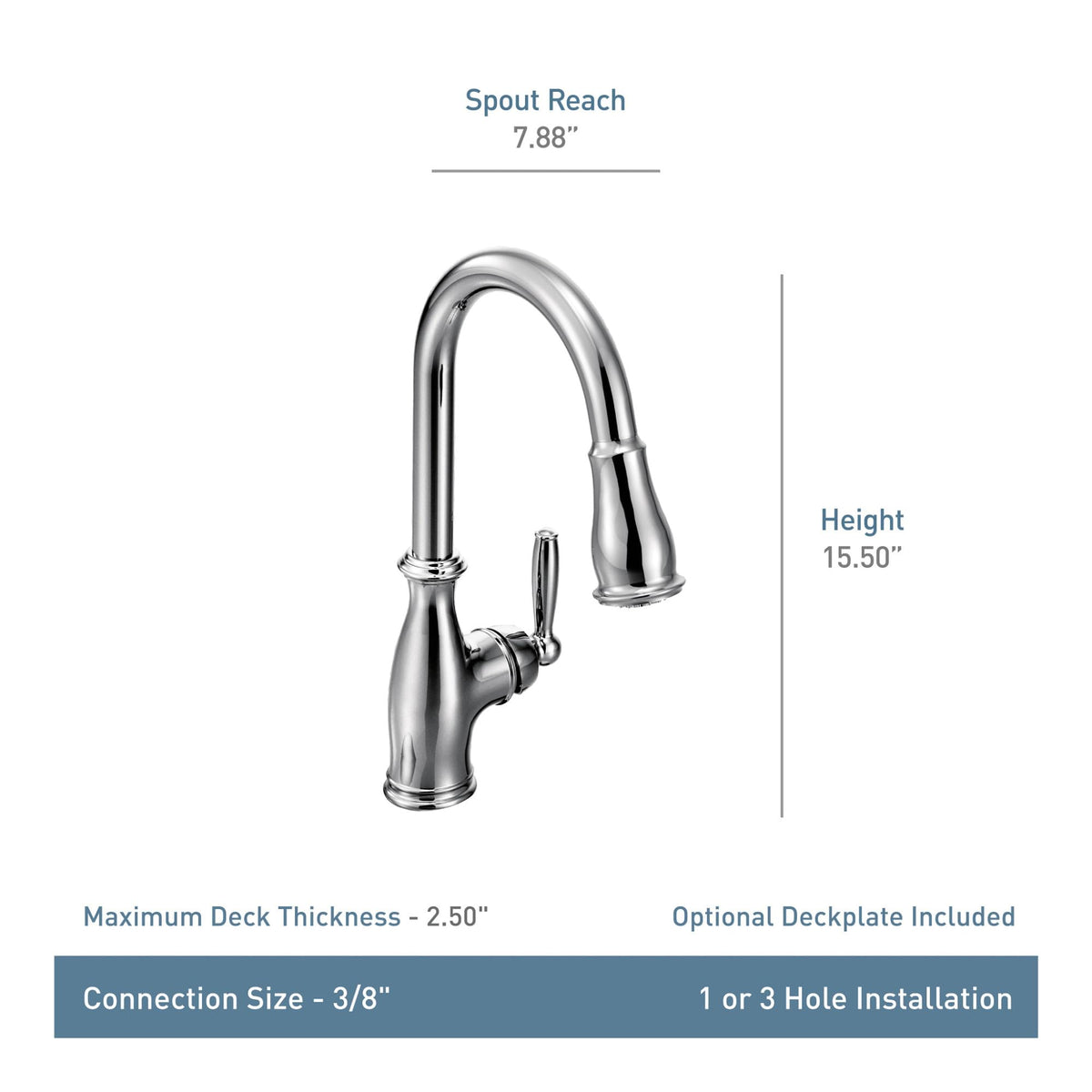 - Q: Can this faucet be installed in sinks with multiple holes? A: Yes, the Moen Brantford Kitchen Faucet is designed for installation in sinks with either one or three holes, and it comes with an optional escutcheon (deck plate) for flexibility.