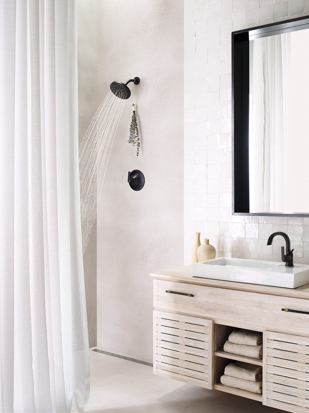 • Q: What is the finish of the Moen Doux towel bar? A: The Moen Doux towel bar features a matte black finish that adds a touch of sophistication to any room.