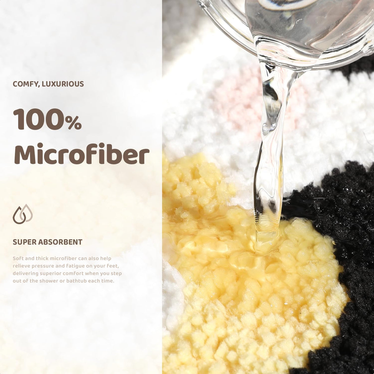- Q: How much water can the rug absorb? A: The rug is designed to absorb five times its weight in water within a few seconds, helping to keep bathroom floors dry.