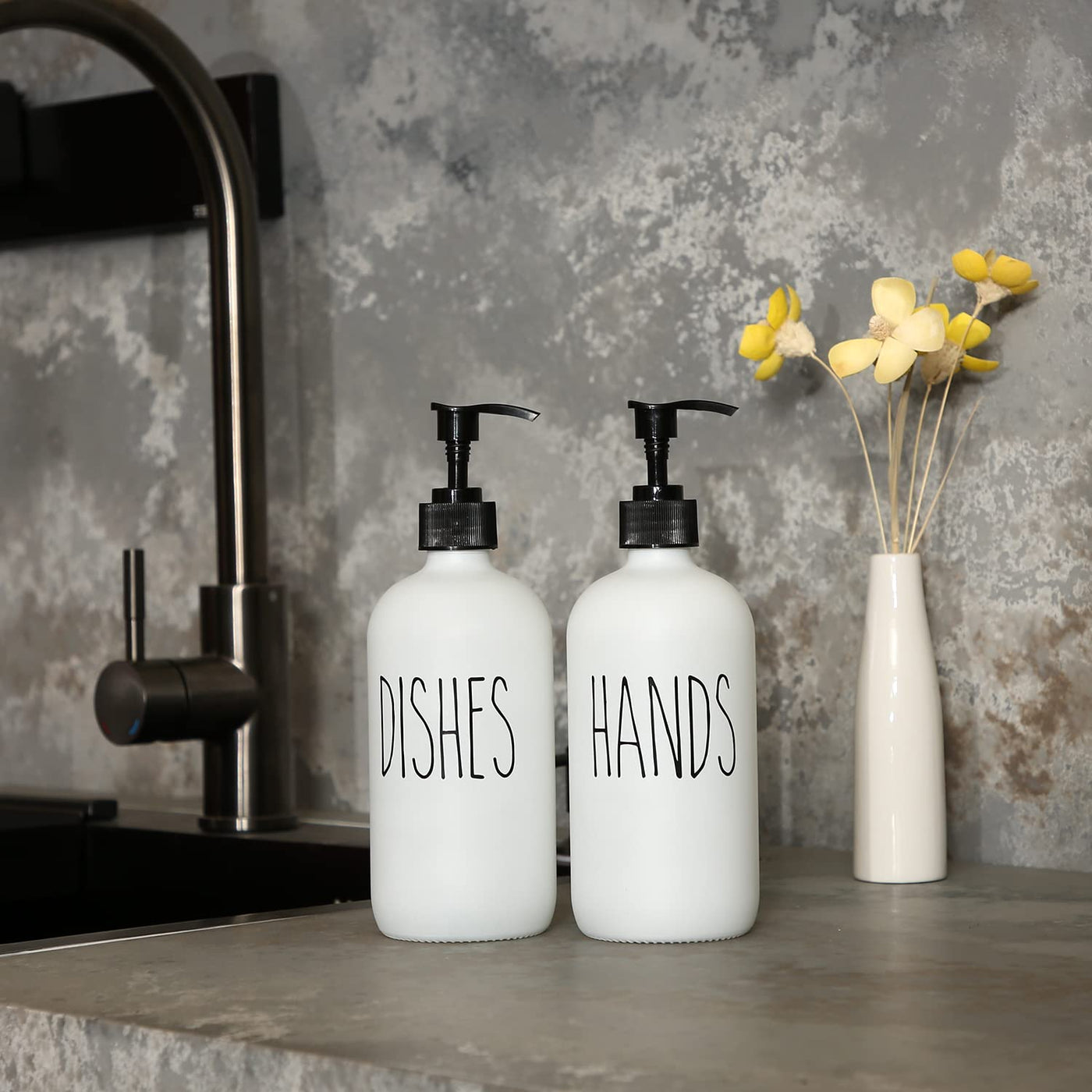 Momeemo Soap Dispenser Set 2 Pack, Contains Dish Soap Dispenser And Hand Soap Dispenser. 16 Oz Glass Soap Dispenser With Black P