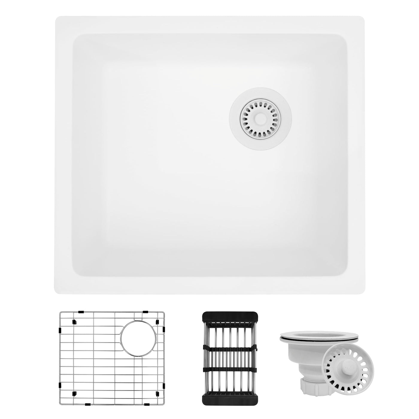 Monsinta Bar Sink,Bar Sink Undermount, 19'' X 17'' White Bar Sink, Undermount Kitchen Sink With Accessories, Quartz White Kitche