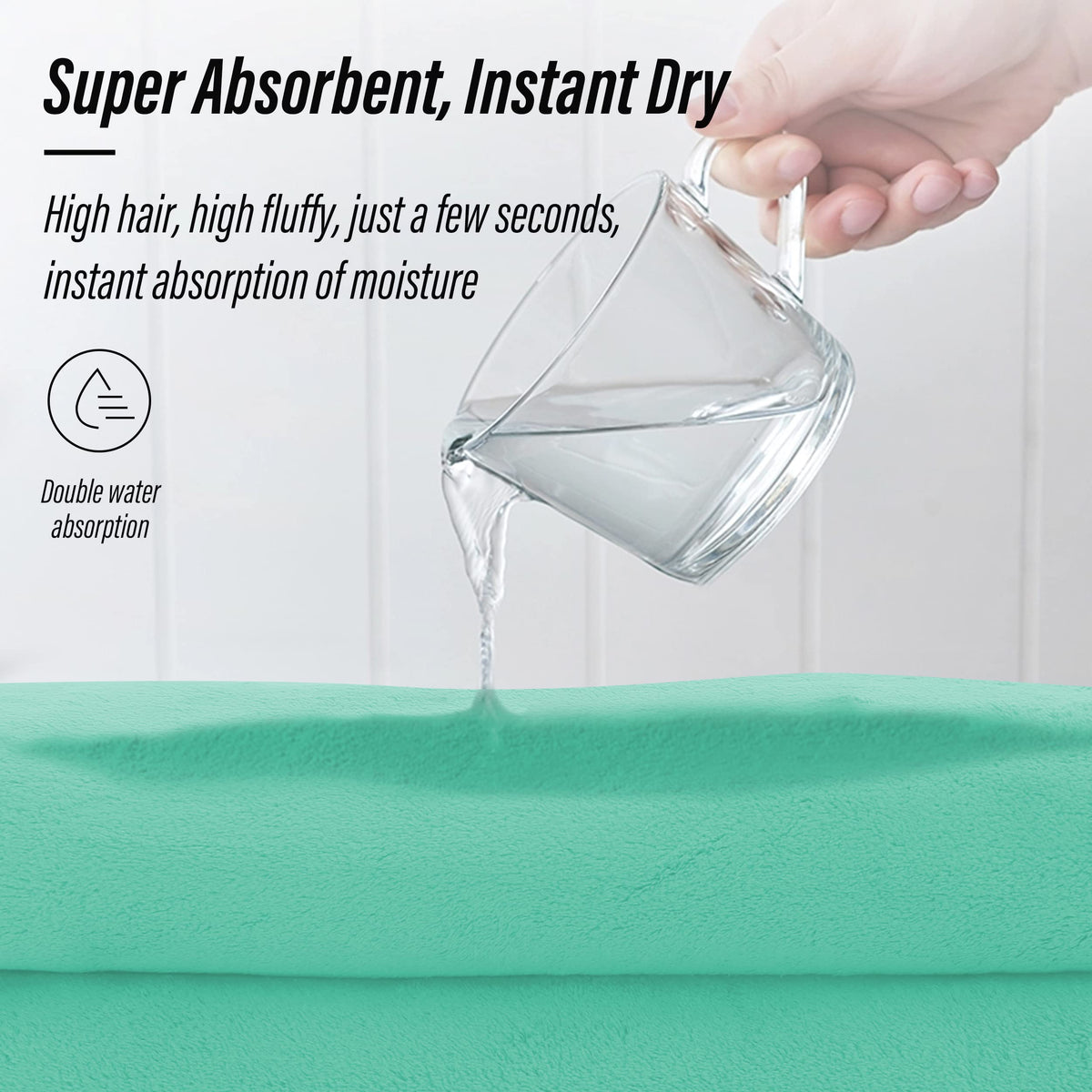 Moonqueen Ultra Soft Microfiber Coral Velvet Towel Set - Quick Drying, 2 Bath Towels, 2 Hand Towels, 2 Washcloths - Aqua Green,