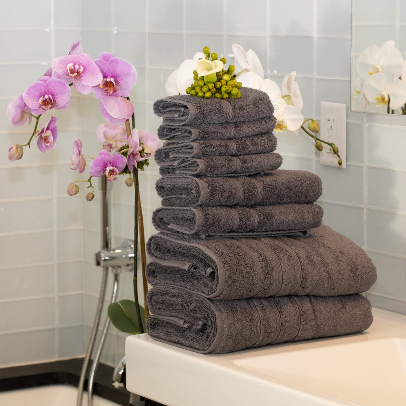 Mosobam Luxury Turkish 8Pc Towel Set 30X58 16X30 13X13 Charcoal Gray (Dark Grey) 700 Gsm Bamboo Viscose & Aegean Turkish Combed