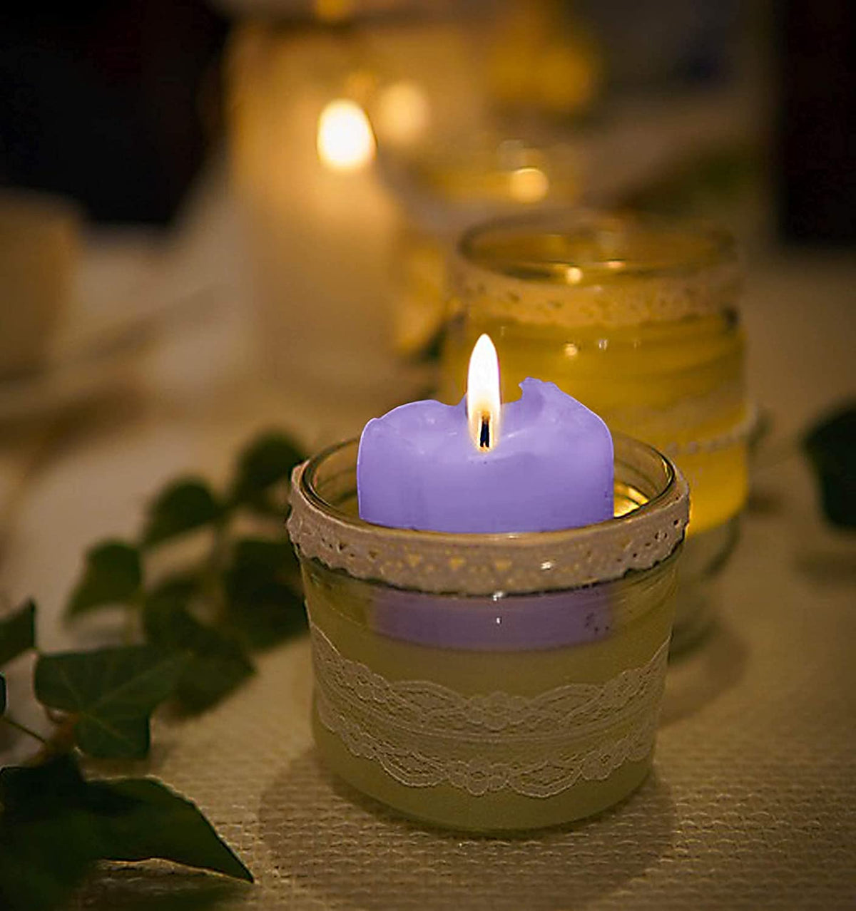 MOWIN Votive Candles Unscented Smokeless Wax Candles Set of 6 Votive Glass Candle Home Decor Small Candle 8-9 Hour (Purple Votive Candle)