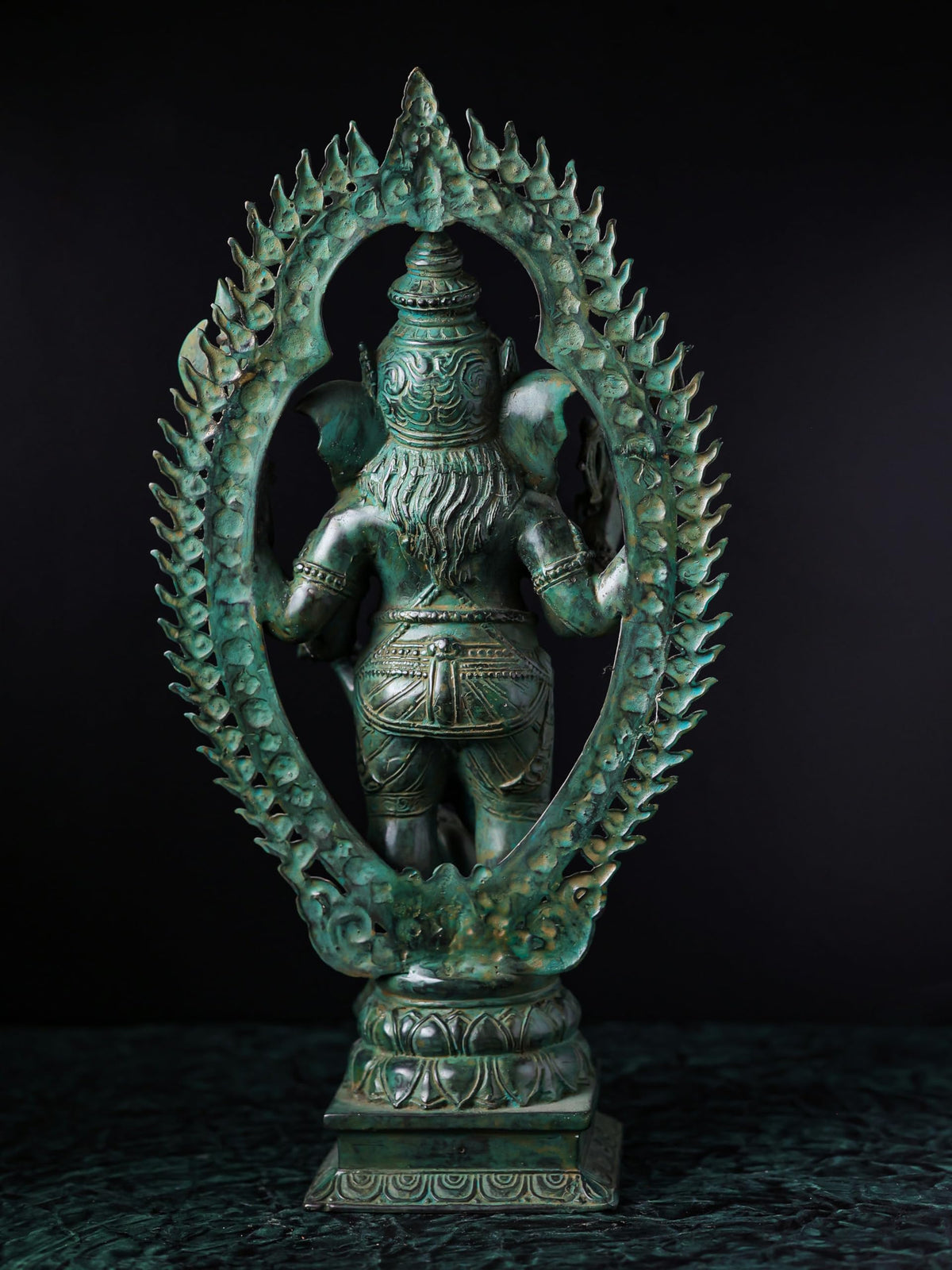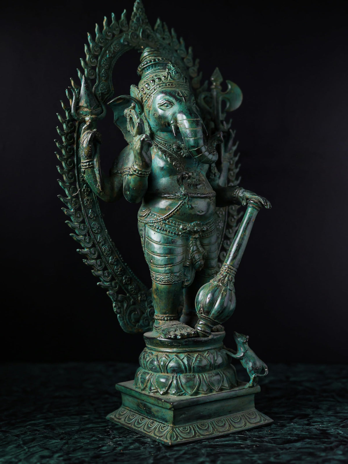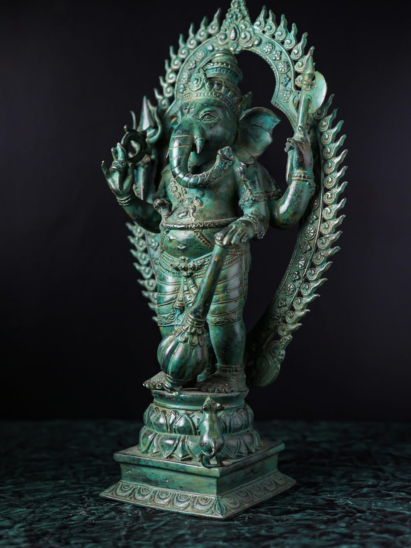 Mridaya Bronze Dancing Ganesha Statue, 45 Cm Ganesh Antique Statue Green Finish Ganesh Statue, Ganpati Idol, Good Luck Gift For New Beginnings, House Warming Gift | Home Altar Decor | Diwali Gift.
