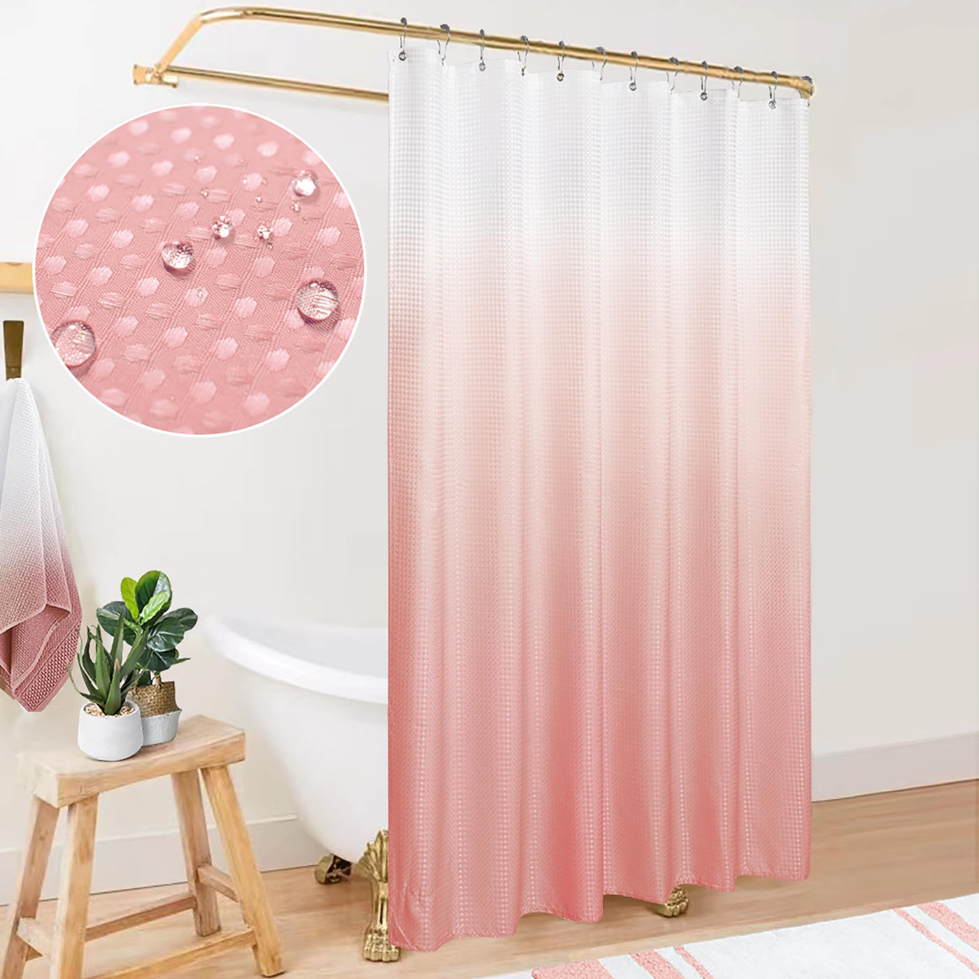 Mrs.Naturall Pink Blush Shower Curtains For Bathroom Cute Teen Girls Kids Shower Curtain Sets White And Pink Boho Ombre Rose Gol